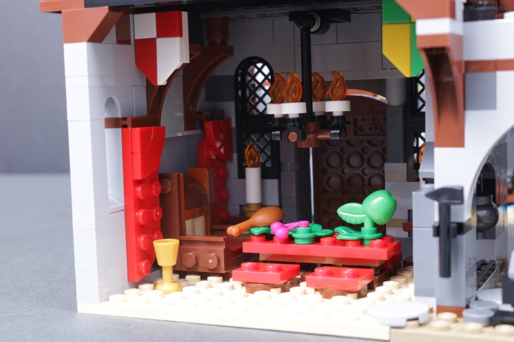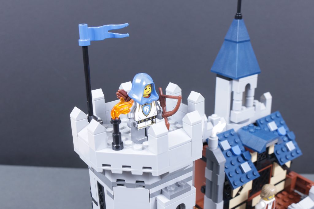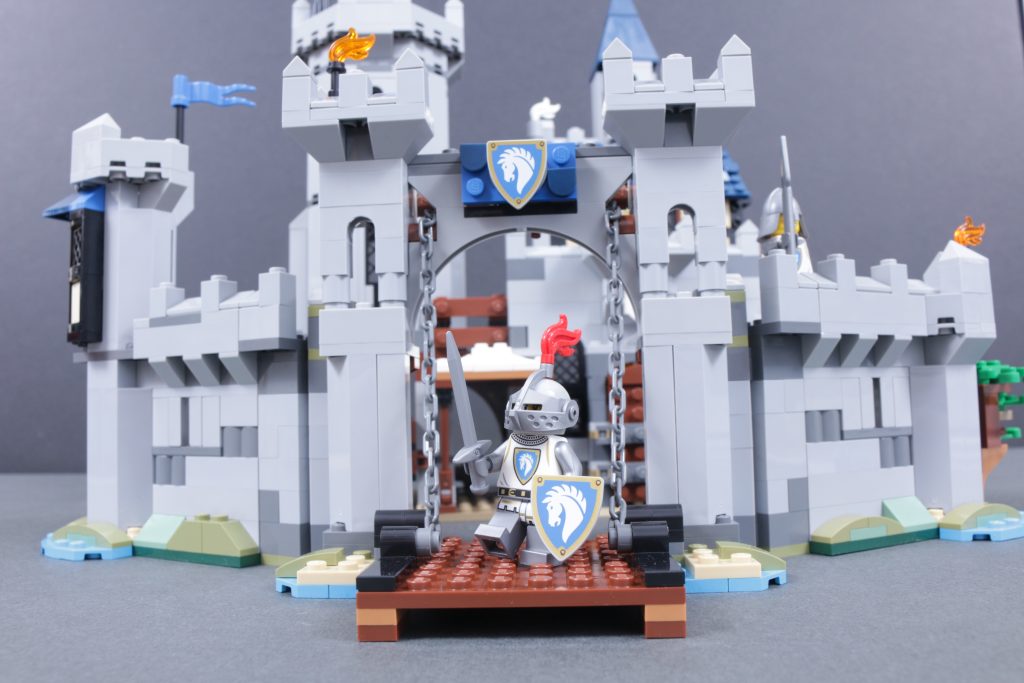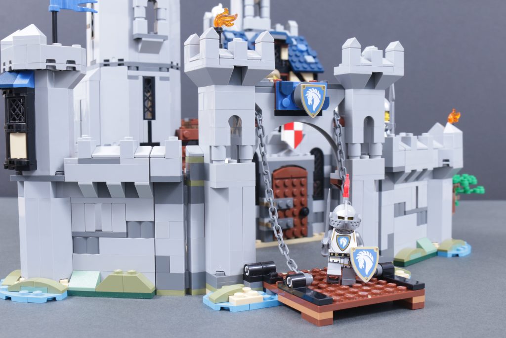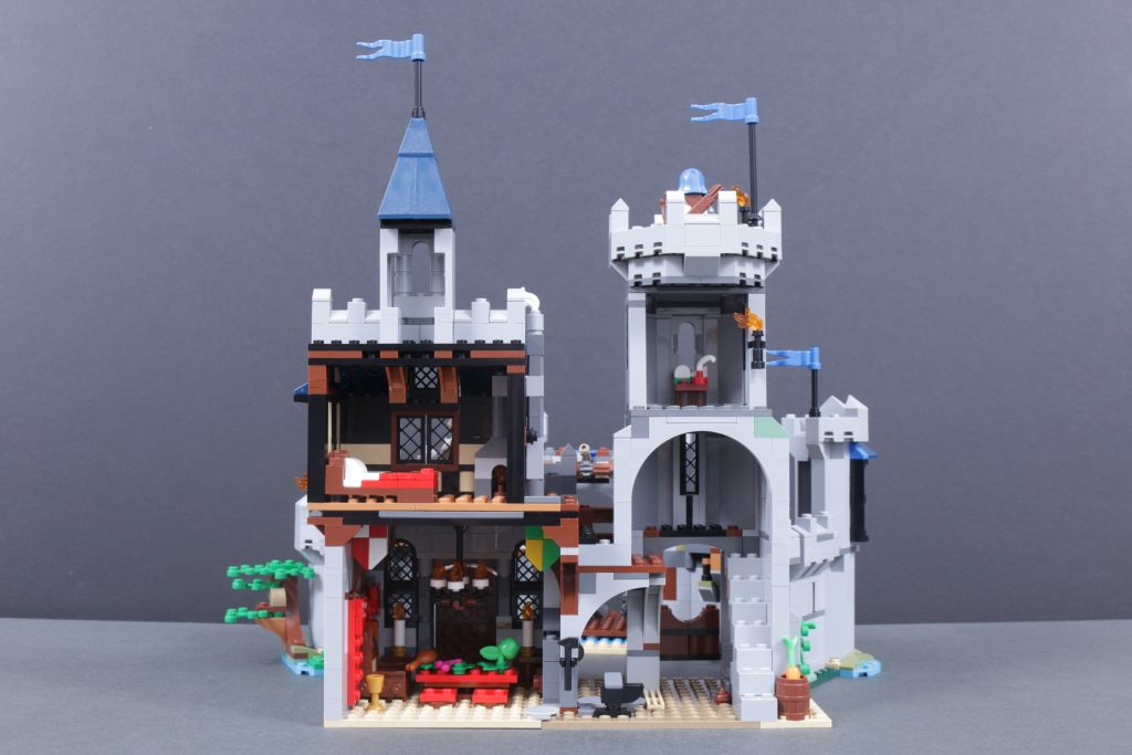 A brincadeira é o ponto principal do design do modelo, com minifiguras que podem ser colocadas em todos os lugares que você desejar: com vista para as ameias, no topo da torre de vigia, com vista para a ala interna do castelo, ou trabalhando no estábulo/ferreiro no nível inferior, ou festejando com o rei e seus súditos.