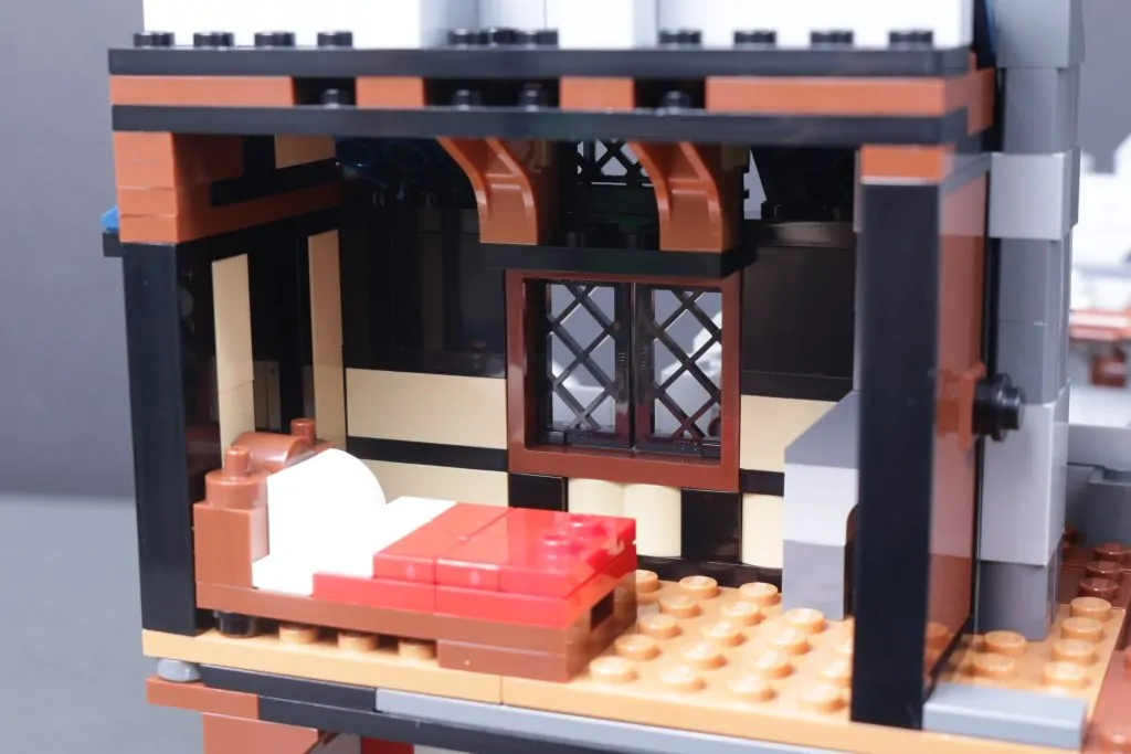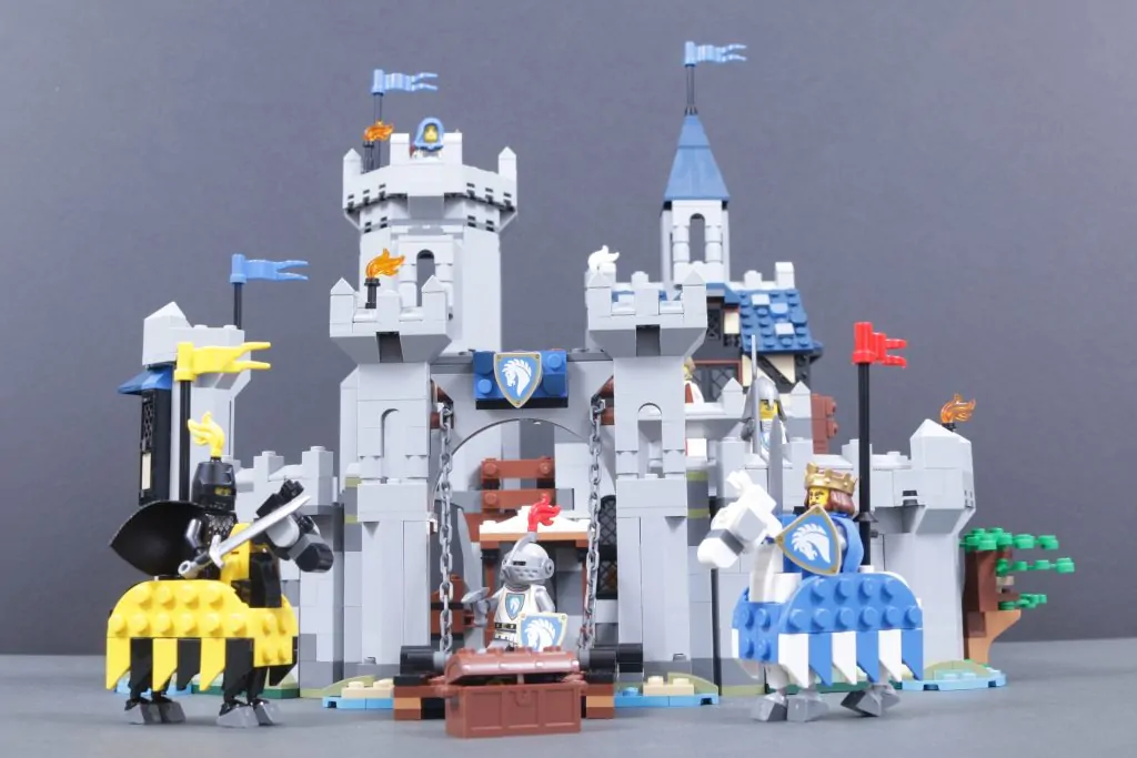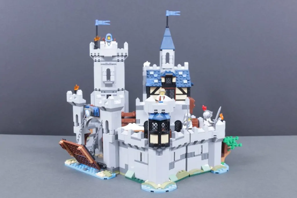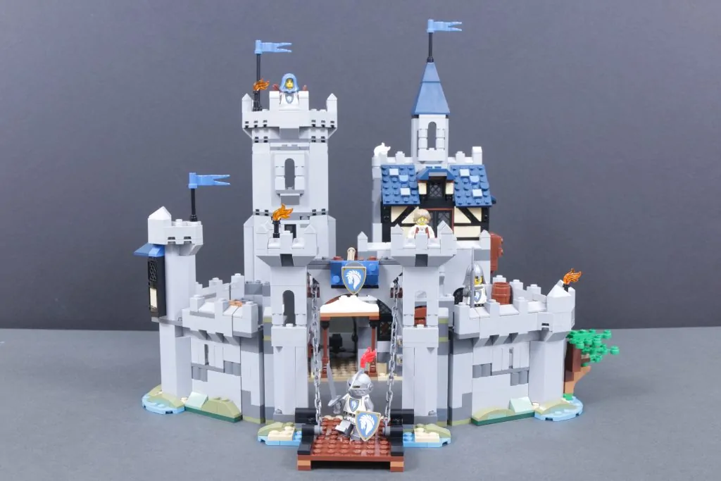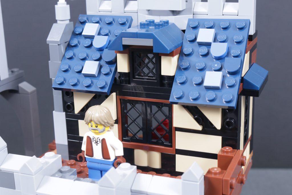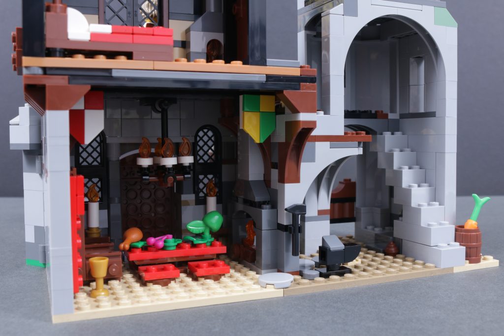 A brincadeira é o ponto principal do design do modelo, com minifiguras que podem ser colocadas em todos os lugares que você desejar: com vista para as ameias, no topo da torre de vigia, com vista para a ala interna do castelo, ou trabalhando no estábulo/ferreiro no nível inferior, ou festejando com o rei e seus súditos.