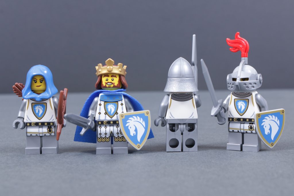 Além disso, as seis minifiguras incluídas são excelentes e, em três designs, apresentam duas novas facções para o tema mais amplo do Castelo – um rei da facção Cavalo, cavaleiros Cavalo e um cavaleiro da facção Serpente. Tivemos inicialmente cavaleiros do Castelo uniformizados de branco como parte da facção Cavaleiros Reais em meados da década de 1990 e, mais recentemente, vimos um cavaleiro Paladino branco na Série de Minifiguras Colecionáveis de Dungeons & Dragons.