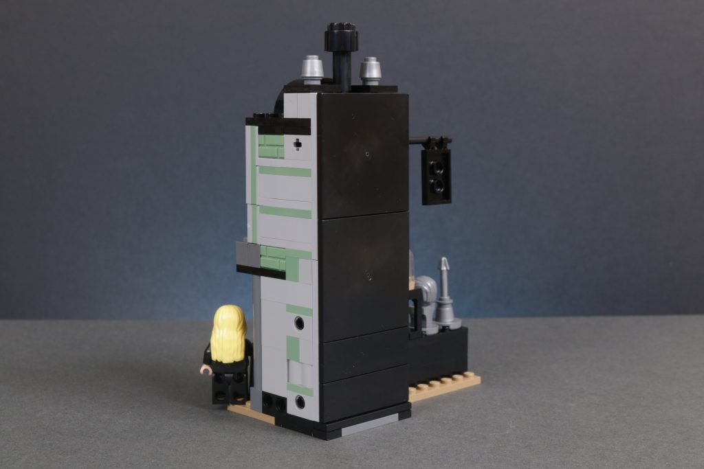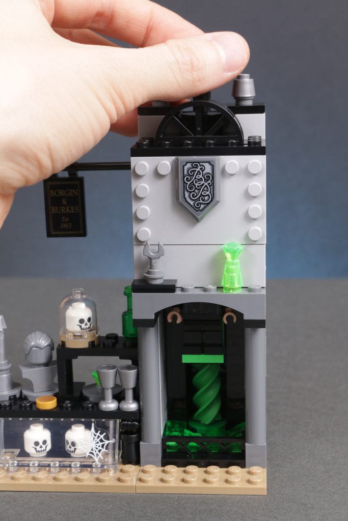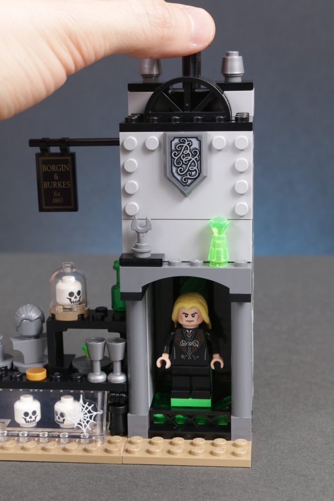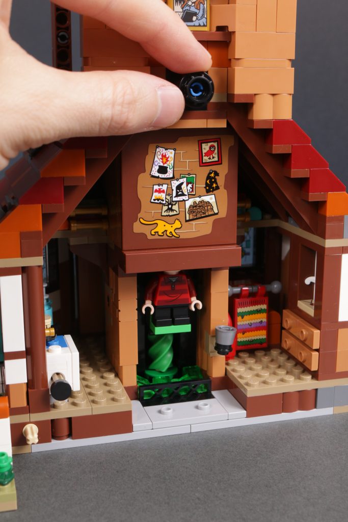 E esse mesmo recurso lúdico é o ponto central do design de 40695 Borgin and Burkes: Rede de Flu, oferecendo um panorama da loja escura e misteriosa na Travessa do Tranco, baseada na mesma estrutura de uma lareira com torre de Rede de Flu. Funciona da mesma maneira, tem o mesmo efeito e, de forma simples e eficaz, continua a contar a história da desventura de Harry em LEGO.