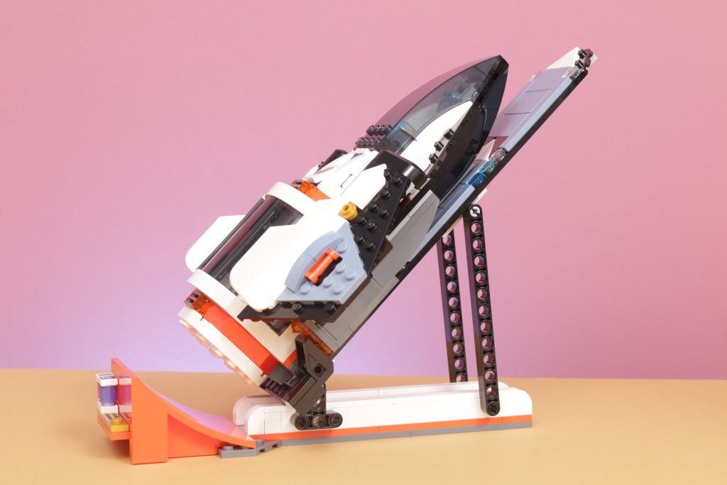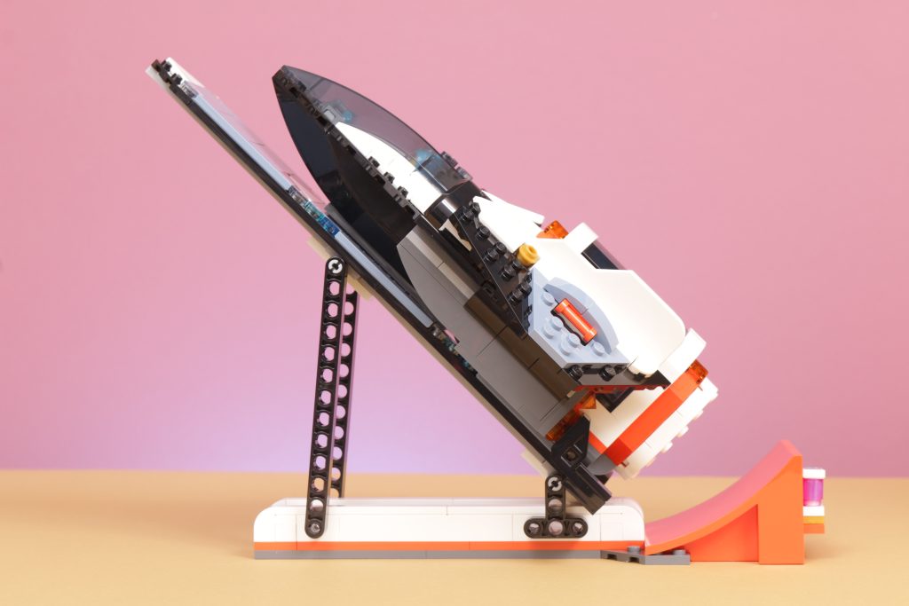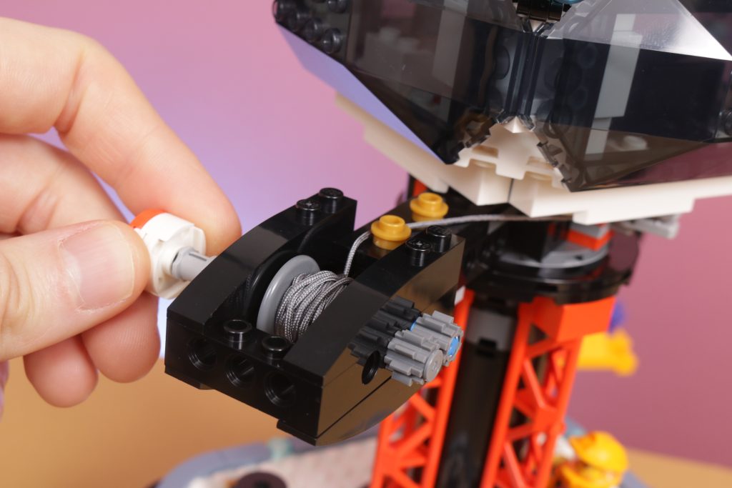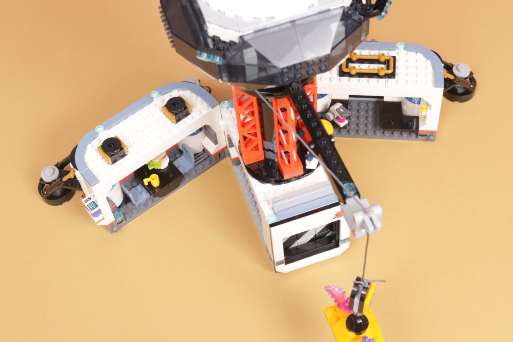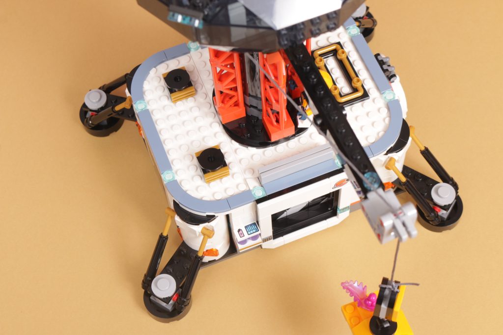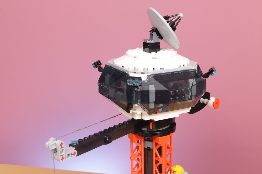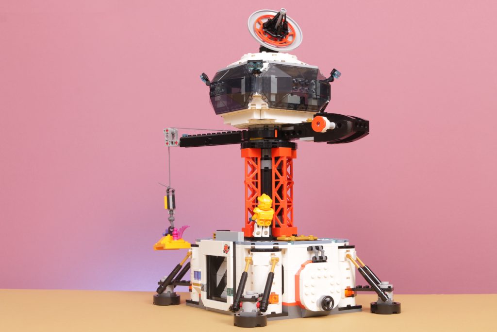 Combine isso com a coluna laranja de aparência industrial que sustenta o deck de observação e a base parece incrivelmente autêntica com a aparência de algum tipo de assentamento fictício. Estilisticamente, combina com os outros conjuntos do LEGO City Subtema espacial e, embora a base possa ser ofuscada pelo tamanho dos veículos sobre rodas do resto da gama, a grua e o miradouro continuarão acima deles, o que é um detalhe pequeno mas digno de nota.