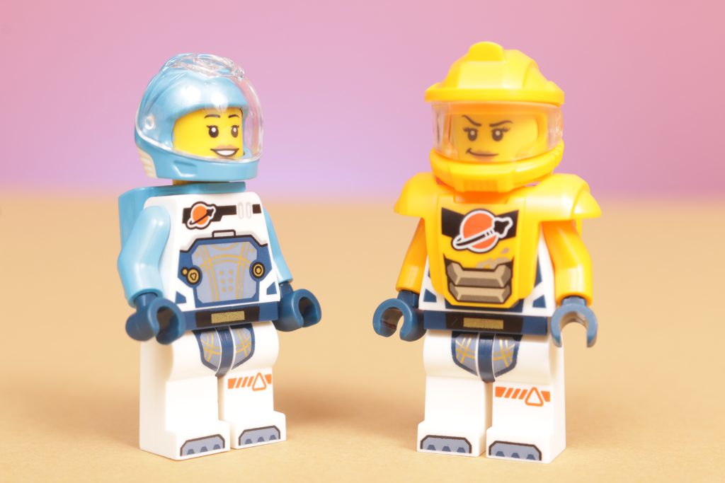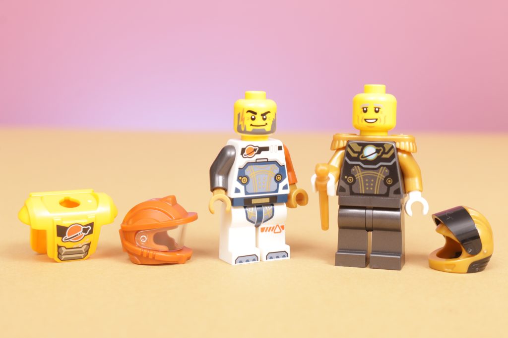 A minifigura mais velha e parecida com um estadista no traje preto e dourado é um pouco estranha, para ser honesto, estilisticamente sentada separada do resto da tripulação e levando o design e o propósito da equipe um pouco para longe da exploração, mineração e descoberta, e em direção a algo um pouco mais militarista e orientado para a patente. Não necessariamente uma direção ruim ou irrelevante a ser tomada, mas uma que apenas pelas cores e detalhes usados aqui não vibra tão bem quanto um design diferente poderia ter.