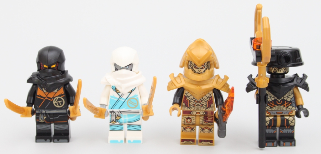 Todos os designs das minifiguras apresentam impressão complexa, embora nenhum seja exclusivo deste conjunto. Aqueles que recebem a onda completa não precisam se preocupar com nenhuma minifigura específica em 71791 Carro de Corrida Spinjitzu Dragon Power de Zane, mas o elenco incluído oferece muitas oportunidades para dramatização e criação de algumas cenas genuinamente legais.