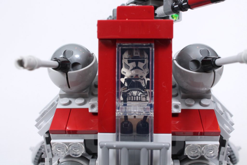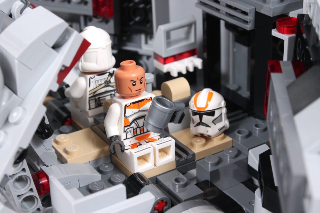 De fato, há espaço na frente e atrás para preencher este AT-TE com todos os Clone Troopers incluídos no conjunto (e mais alguns), junto com detalhes como detonadores térmicos, armazenamento de blaster e até uma caneca de prata metálica. Tudo isso dá vida ao caminhante em um grau maior do que qualquer AT-TE anterior, sem sacrificar sua estética externa: ele também se parece com o melhor LEGO AT-TE até agora, formando uma casca sólida tão livre de lacunas como indiscutivelmente possível.
