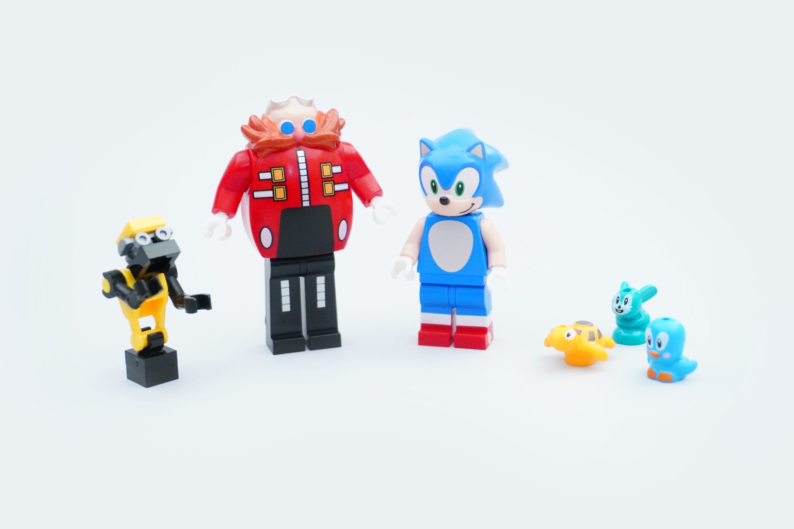 Há duas minifiguras incluídas neste conjunto, junto com um trio de animais fofinhos para Sonic resgatar e um assistente construído em tijolos para o Dr. Eggman.