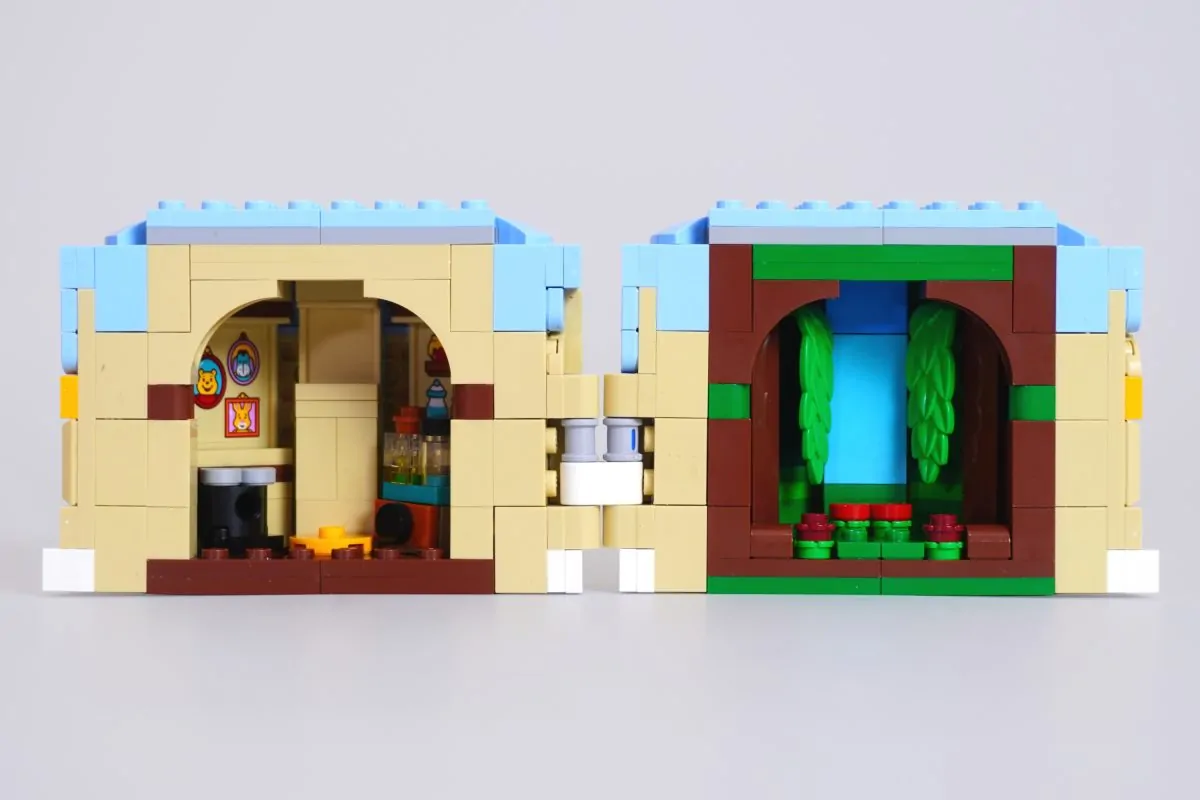 No caso de 43300 Ursinho PoohUm grande pote de mel — maravilhosamente detalhado por fora, mas lamentavelmente cheio de adesivos por dentro — parece um pouco destoante da construção principal. O Ursinho Pooh, feito de peças, é o ponto focal, enquanto o minifigura do Pooh e seu mundo pouco decorado dentro do pote parecem um tanto deslocados.