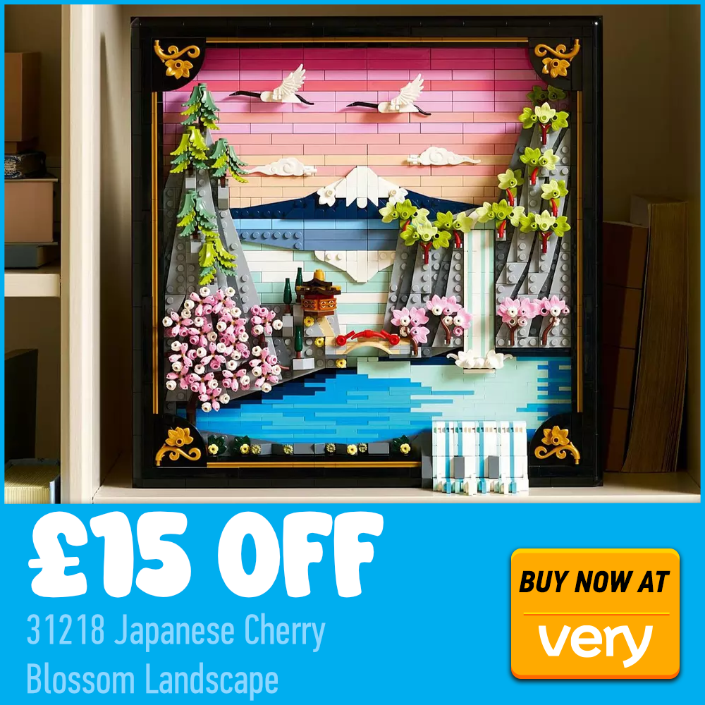 A redução de £15 em 31218 Paisagem de flores de cerejeira japonesas É uma das melhores ofertas, geralmente custando £99.99, agora por £84.99. Você pode exibir este modelo em uma parede ou em uma superfície, graças à cascata dobrável. 11384 Filhote de Golden Retriever O preço também foi reduzido em £13, pouco tempo depois do lançamento no início deste mês. Agora está disponível por £116.99 em vez de £129.99.