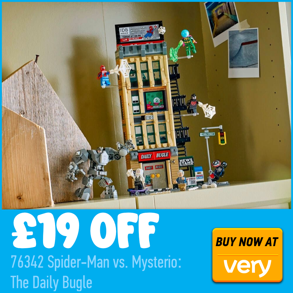 Uma opção menos chamativa para exibição na Very seria o LEGO. Marvel 76342 Spider-Man vs. Mysterio: O Clarim DiárioO modelo modular menor do Clarim Diário vem com uma ótima seleção de minifiguras, vários modelos e compatibilidade com outros conjuntos LEGO. Marvel Edifícios por £80.99 em vez de £99.99.