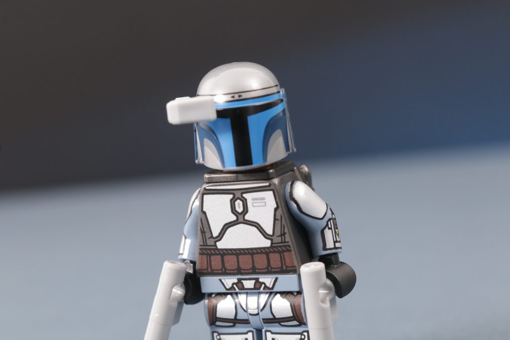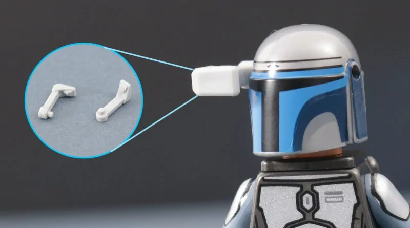 Isso também se aplica ao posicionamento da ocular em relação ao telêmetro. Embora não funcione tão bem em soldados clones que insistem em ter furos em seus capacetes bem acima da linha dos olhos, esta nova peça do telêmetro se sobrepõe perfeitamente à viseira de um capacete Mandaloriano, permitindo que qualquer minifigura usando tal peça de capacete tenha a oportunidade de realmente olhar através da ocular como pretendido. Uma atualização muito bem-vinda para aqueles que precisam de melhores visores de mira.