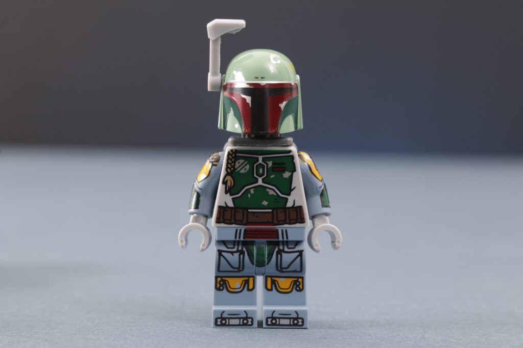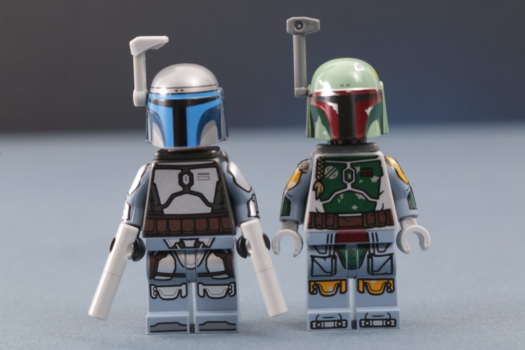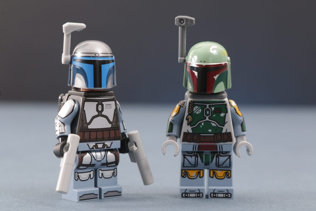O novo design de Jango Fett para o conjunto UCS 75409 Nave estelar classe Firespray de Jango Fett Inclui novas estampas nas pernas e no tronco, uma estampa sofisticada nos braços pela primeira vez, uma nova cabeça dupla face em uma cor nougat mais fiel aos personagens, uma nova estampa no capacete e, pela primeira vez em quase duas décadas, um novo telêmetro. Este telêmetro pode ser pequeno, mas talvez seja a parte mais significativa do novo visual do Jango, pois representa a primeira reformulação de uma peça que está em bom uso há 17 anos.