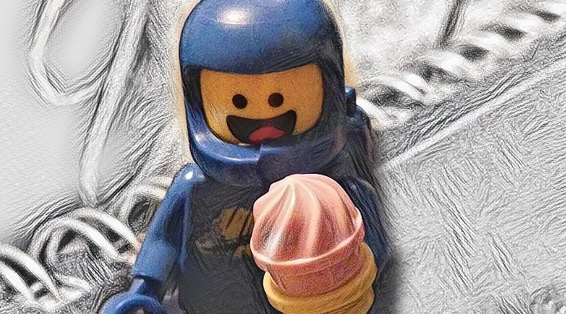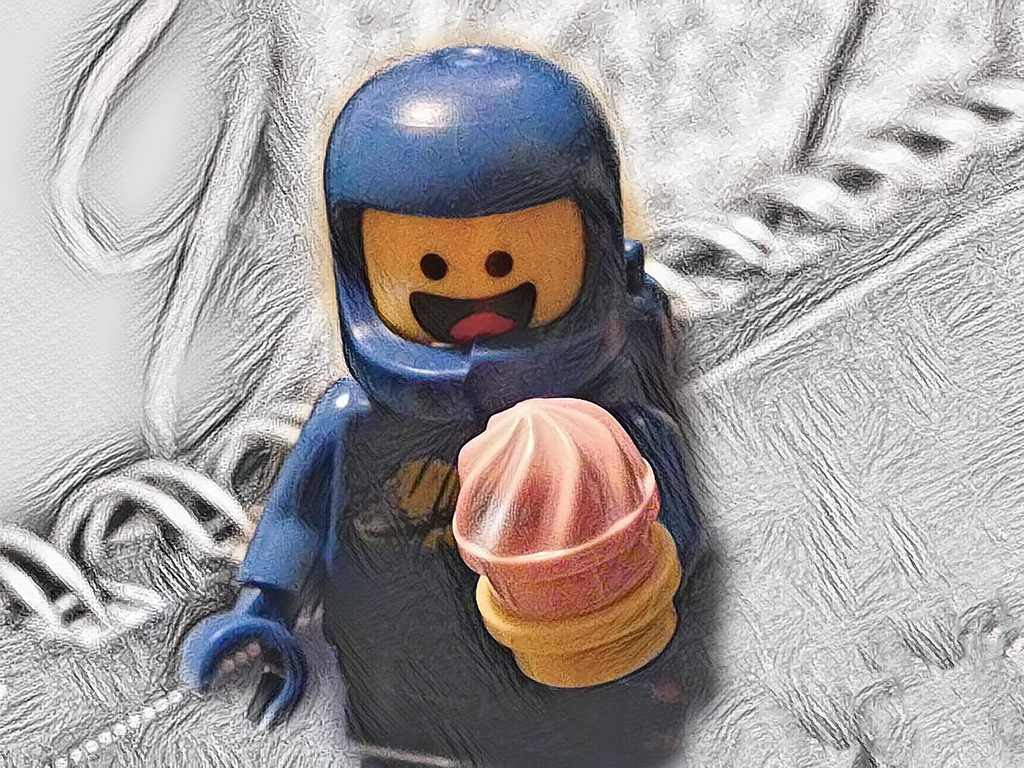 Benny gosta de um tratamento após um dia duro construindo naves espaciais.
