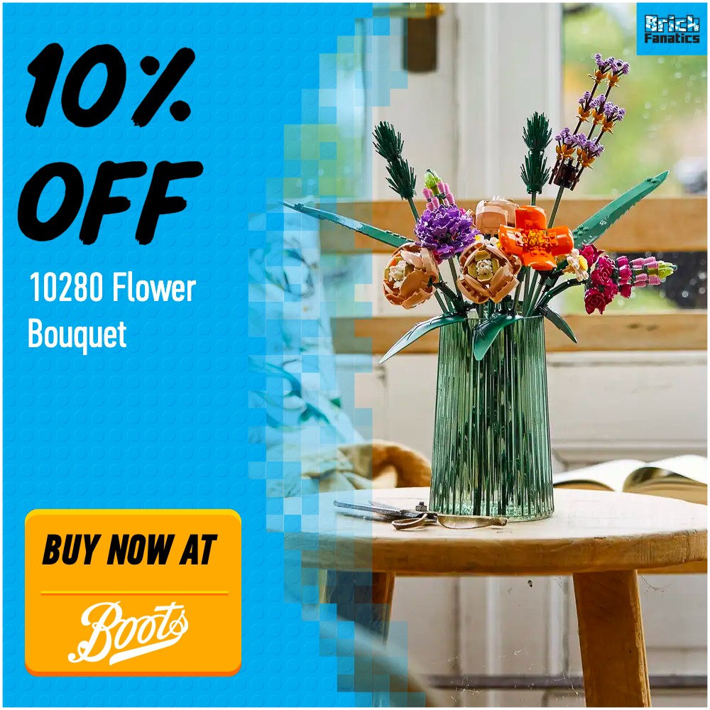| Ícones | 10280 Bouquet de Flores | £54.99 | 10% | £49.49 | Compre agora |