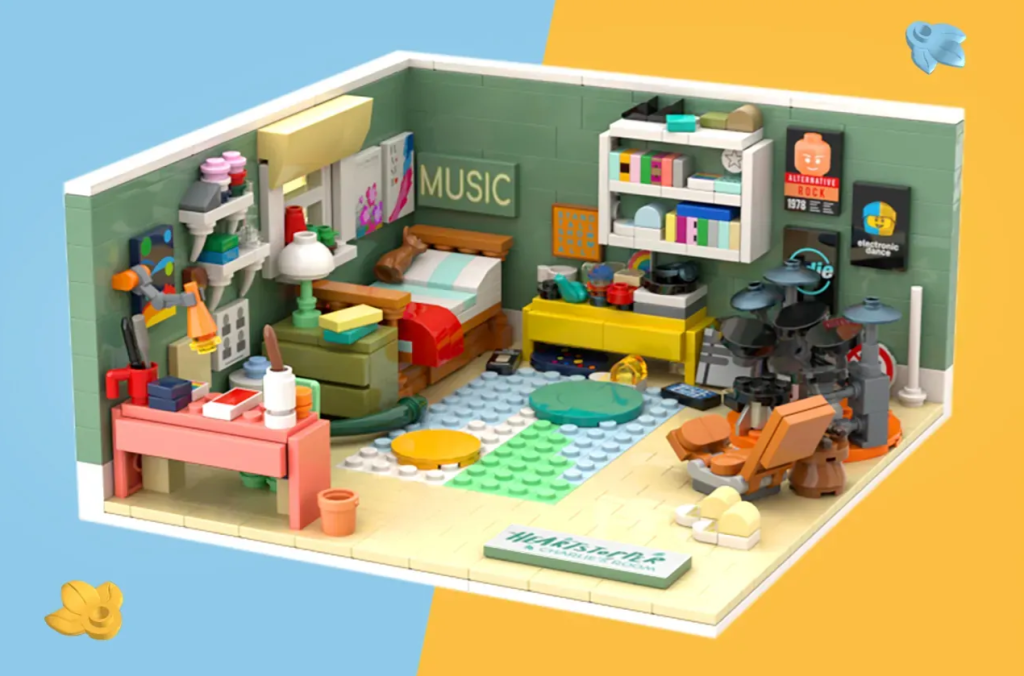 O quarto em si apresenta detalhes reconhecíveis para os fãs da série da Netflix, além de um logotipo da série no canto. Já houve vários cenários baseados em séries da Netflix no passado, incluindo 75810 The Upside Down, 40549 Demogorgon & Eleven e 10291 Queer Eye – The Fab Five Loft.