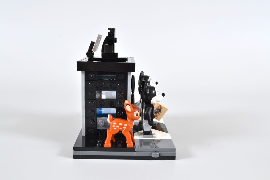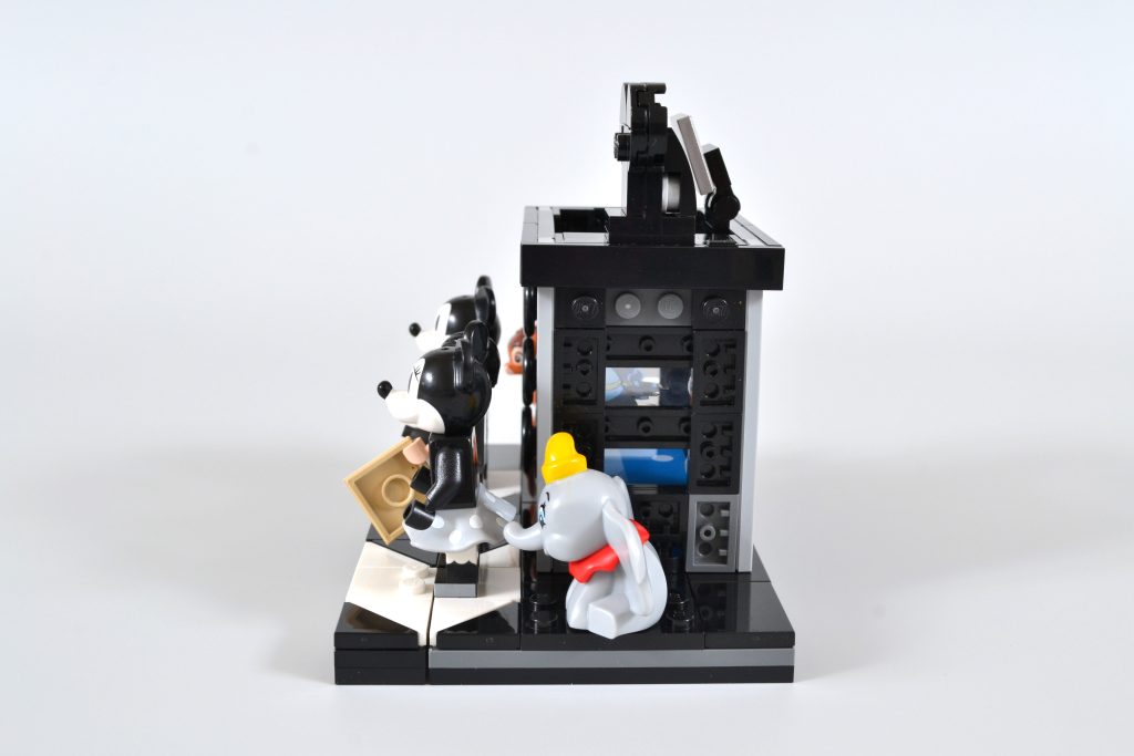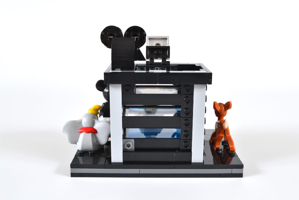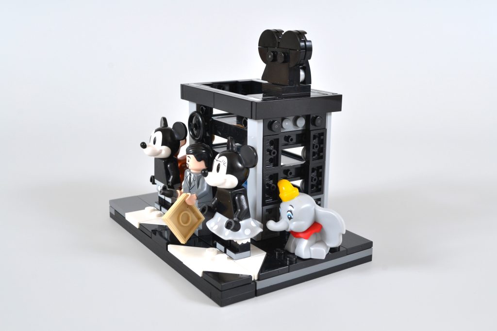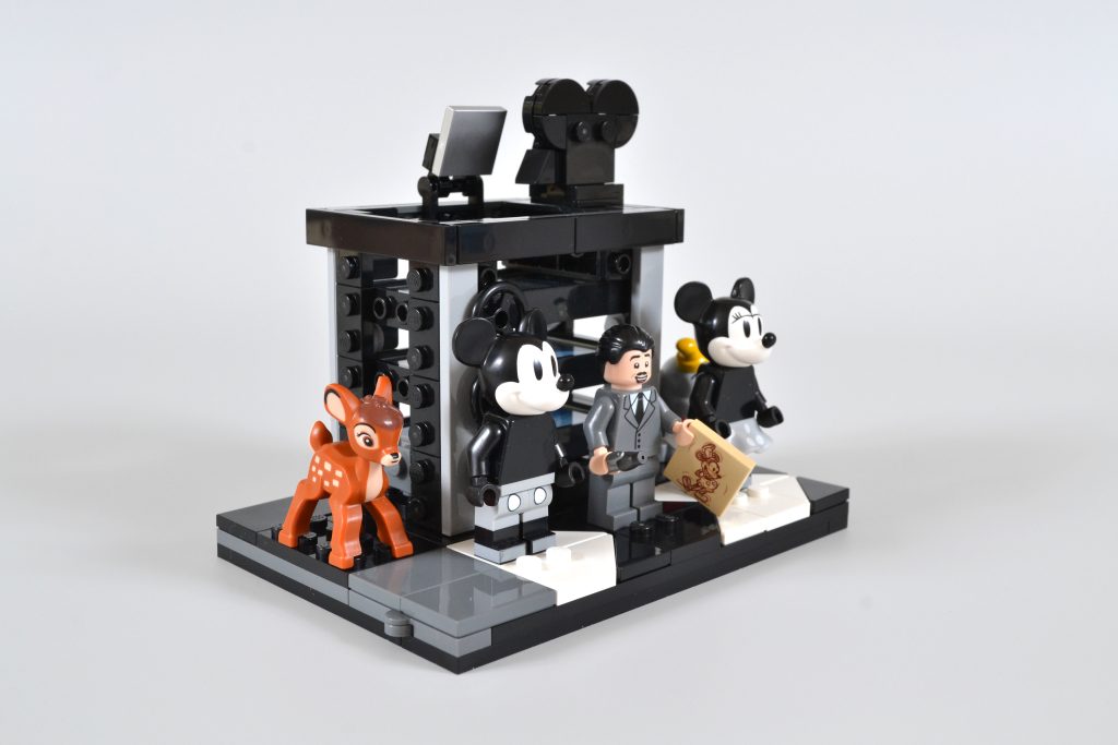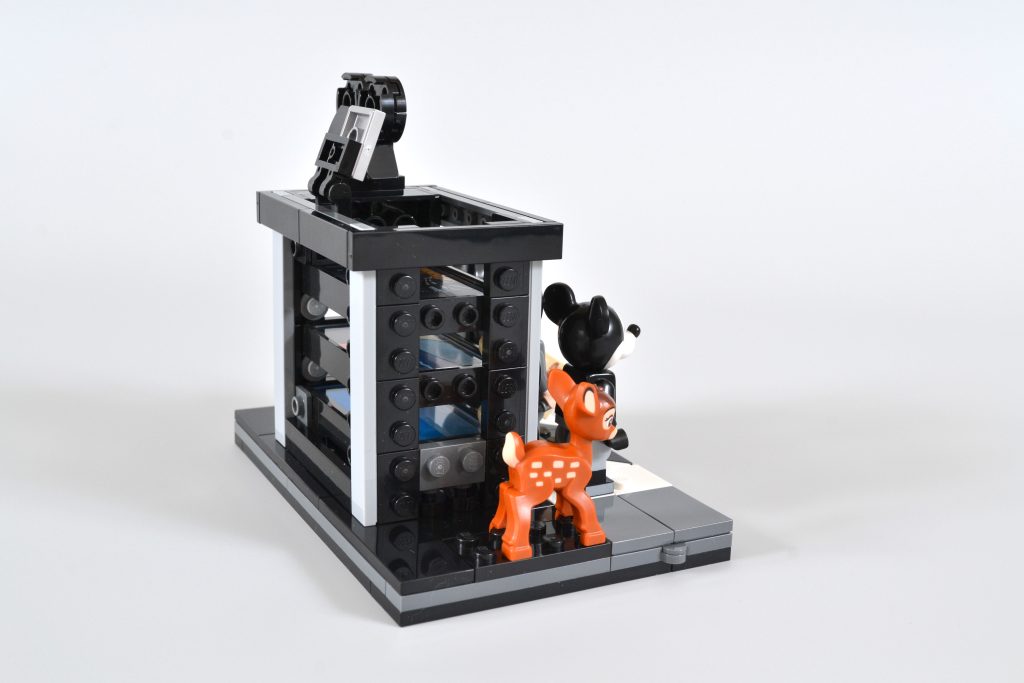 O conjunto oferece ainda mais satisfação para os construtores, combinando um suporte de exibição de minifigura de claquete com uma versão em escala construída em tijolo de uma câmera multiplano. Esta tecnologia foi usada por Disney em seus primeiros filmes de animação 2D e olhando para a construção revela uma cena de três camadas do curta de 1937, The Old Mill. O efeito é obtido pela combinação de um trio de peças transparentes impressas exclusivas (sem adesivos neste conjunto, pessoal), dando à cena completa uma sensação de profundidade, assim como a coisa real.