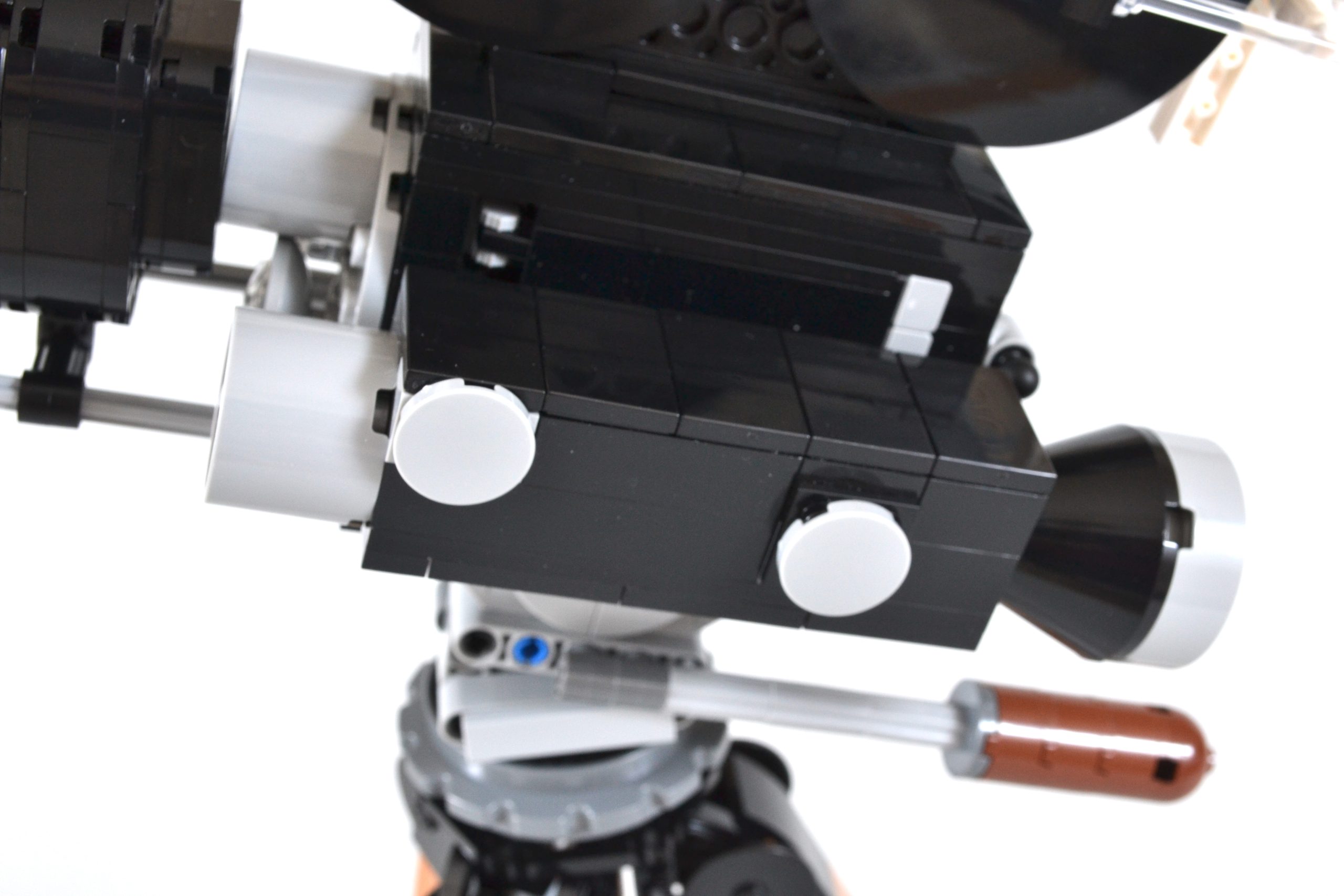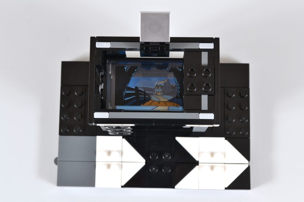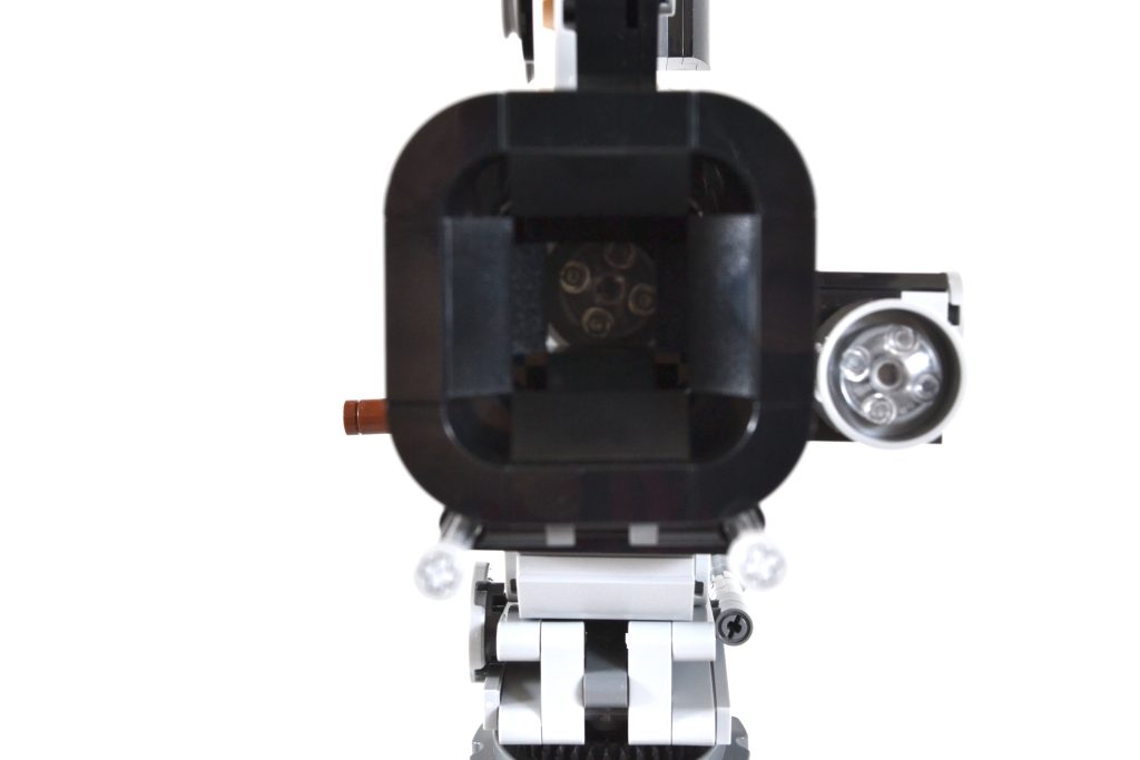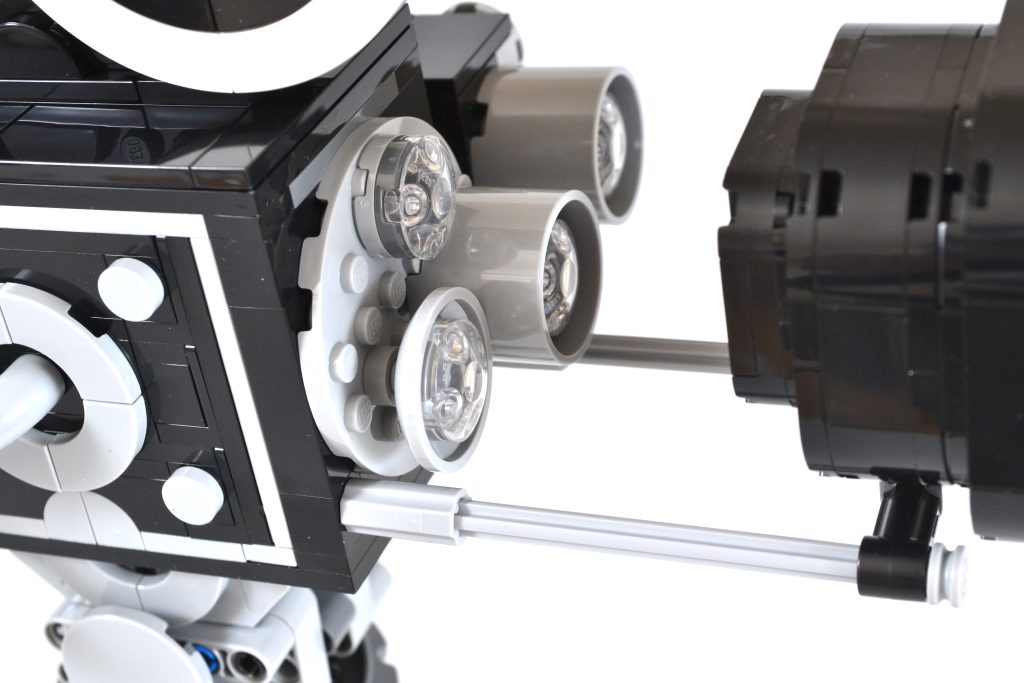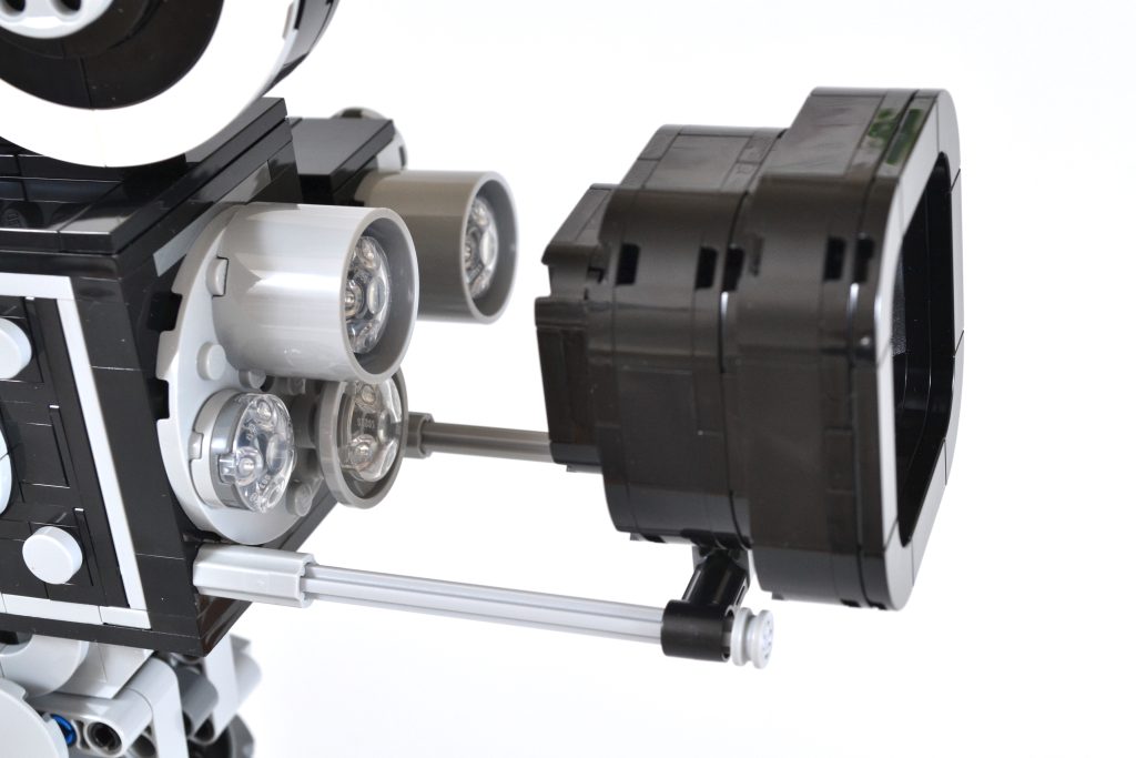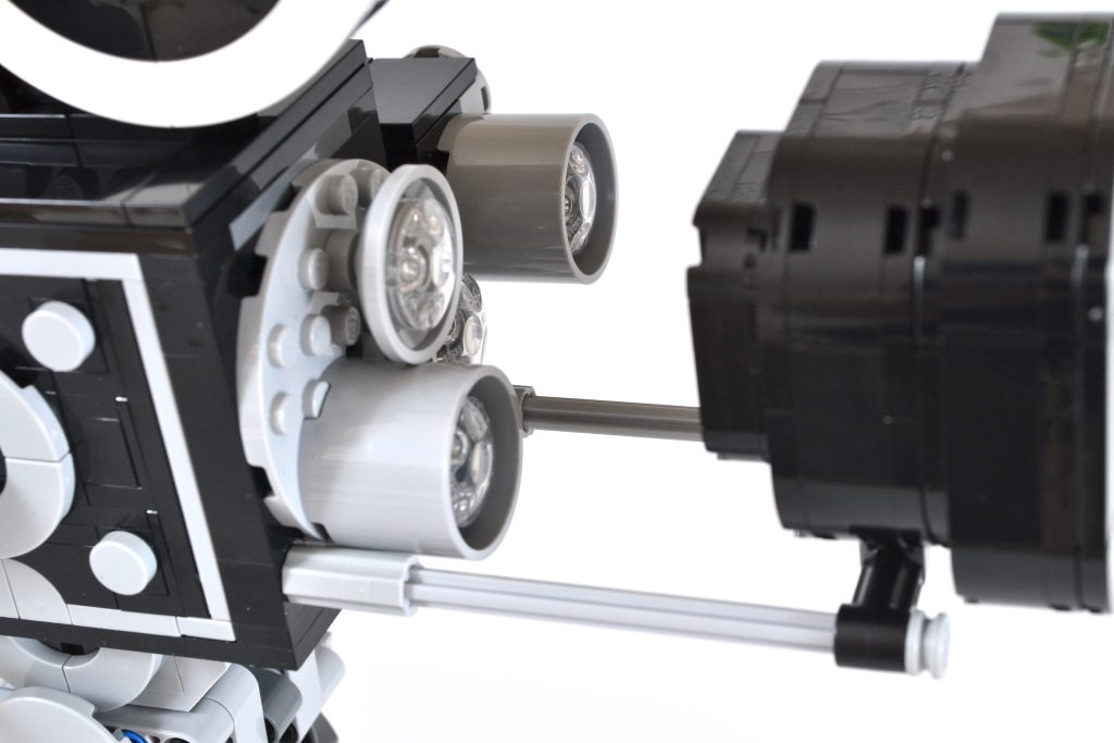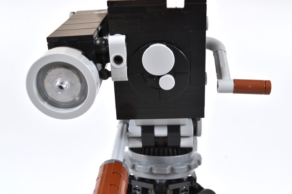 Embora essa parte da construção possa ser essencialmente uma caixa preta e cinza, ainda há muito o que apreciar, tanto ao construir o item quanto ao exibi-lo. Para começar, a câmera tem uma manivela de um lado que pode ser girada, completa com um mecanismo simples de "clique" dentro que replica o som do dispositivo de gravação de filme original.