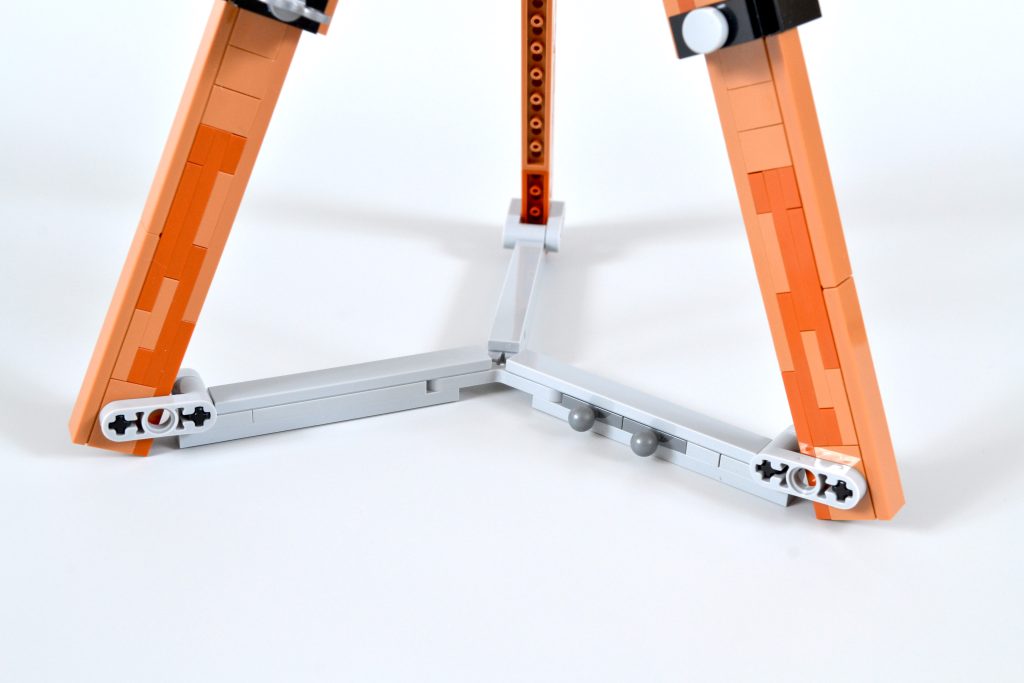 Construção desta parte do 43230 Walt Disney A construção da Tribute Camera começa com o próprio tripé. Há um número surpreendente de Tecnico peças usadas para montar o corpo principal do tripé, com uma seção central sólida provando ser resistente o suficiente para prender três pernas longas. Estes são então mantidos no lugar por uma estrutura cinza de três pontas na base, embora possa ser decepcionante descobrir que as pernas não podem ser reposicionadas, estendidas ou encurtadas de forma alguma.