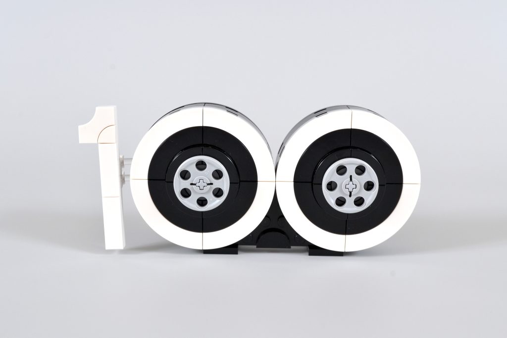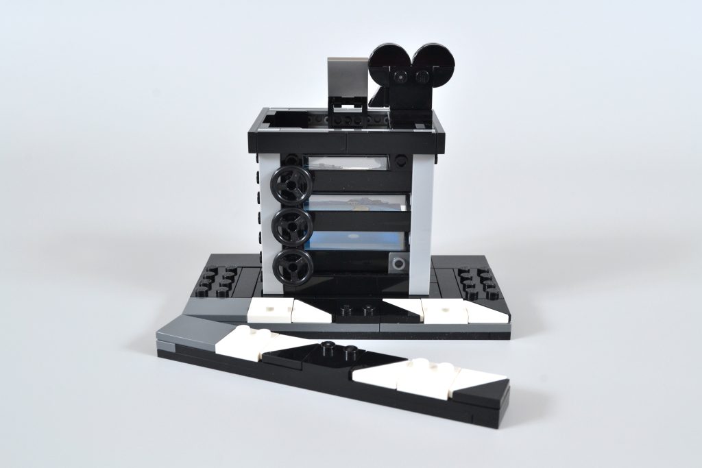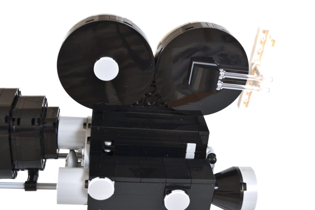 A câmera vintage é complementada por dois grandes cartuchos redondos de filme que, combinados com um número "1" construído com peças, exibem "100" – um uso inteligente desta seção do conjunto e uma referência nada sutil às comemorações do centenário da empresa. Esta parte do LEGO Disney build também pode ser removido, se você decidir que deseja exibir o modelo da câmera sem ele.