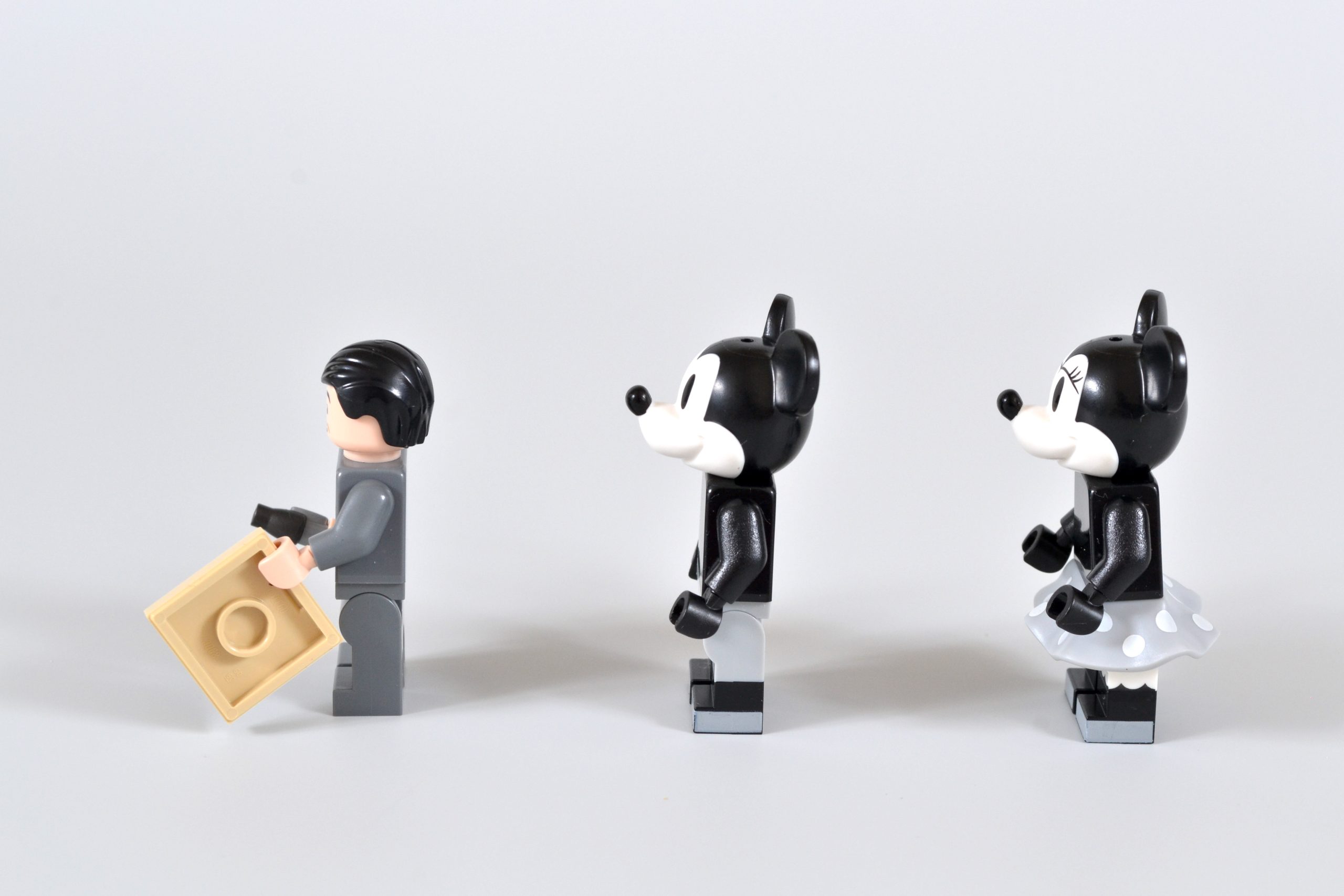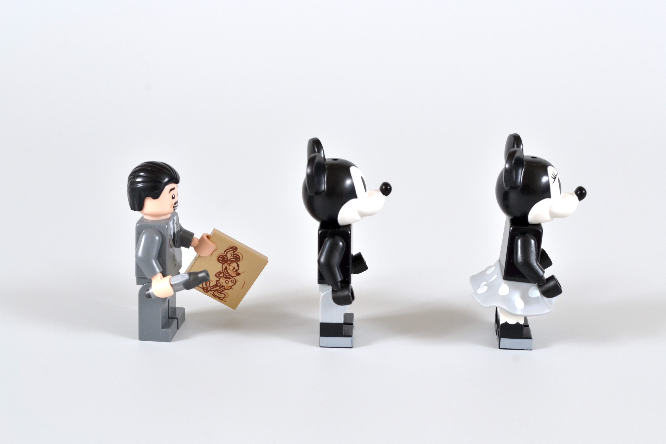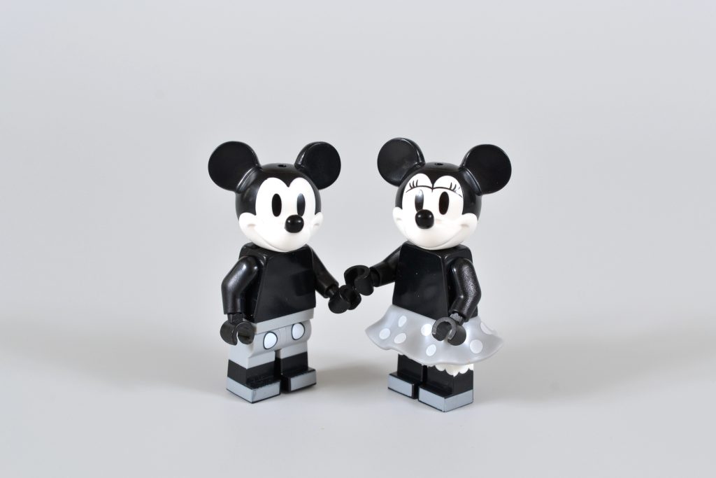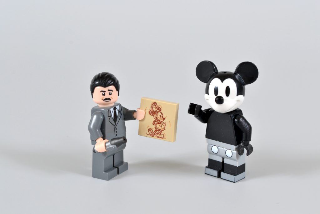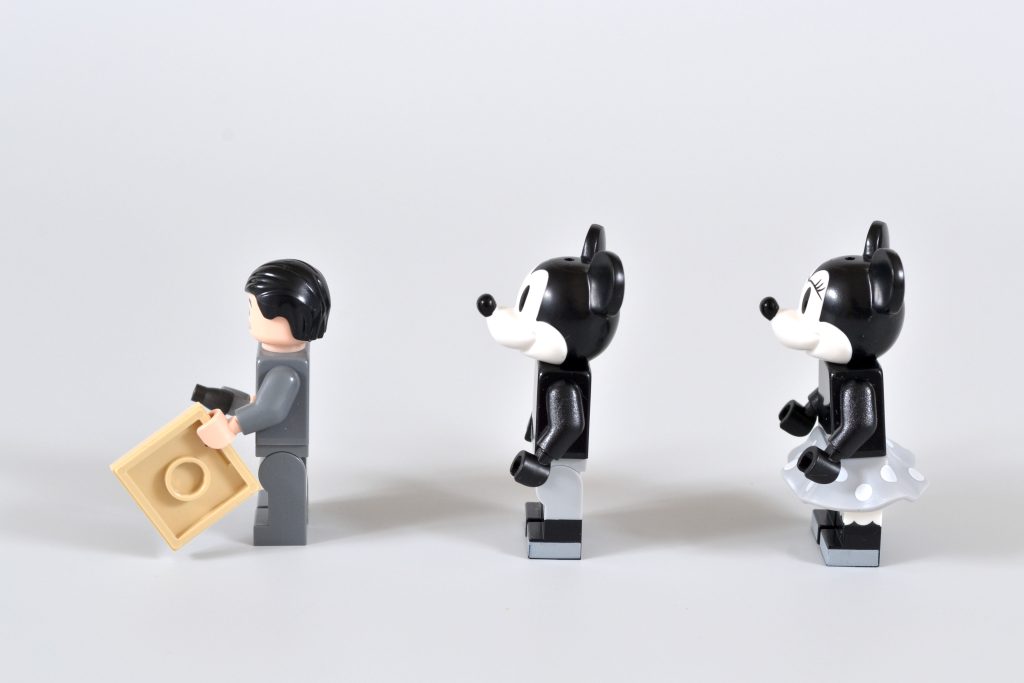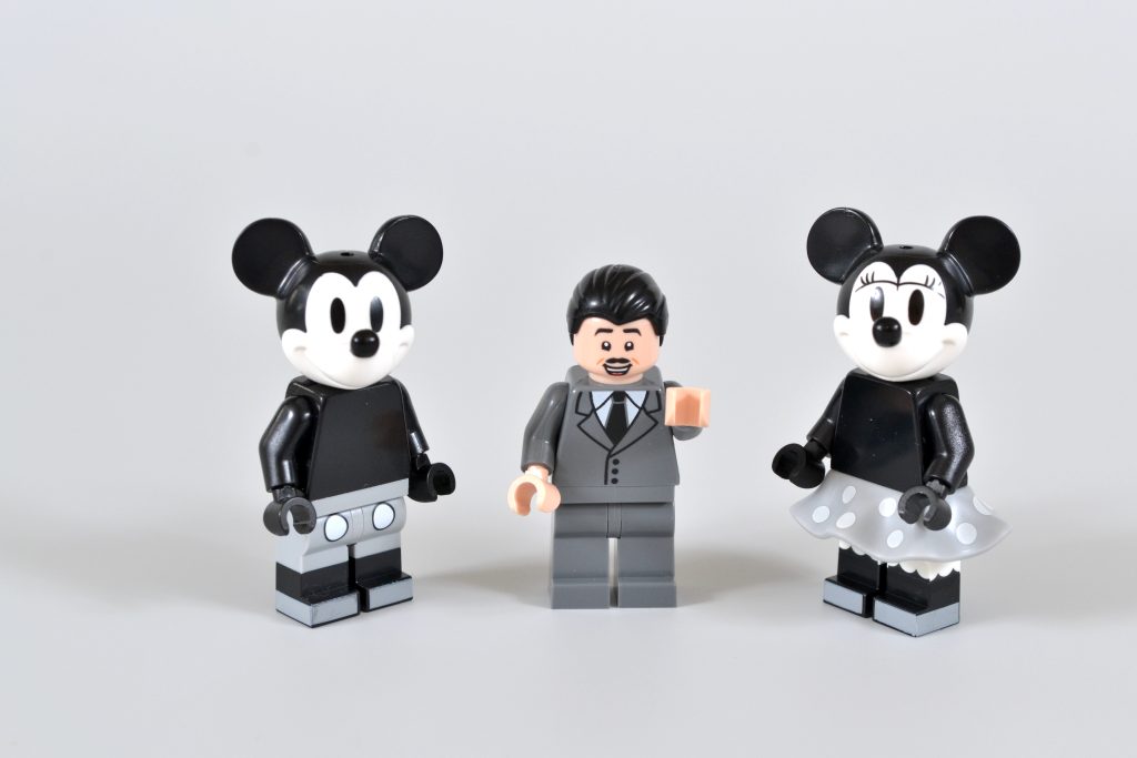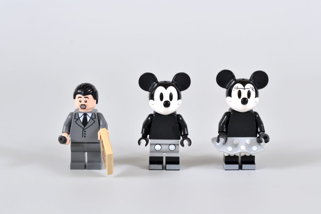 Ele vem acompanhado de versões em preto e branco de minifiguras de duas de suas criações mais famosas, Mickey Mouse e Minnie Mouse. Essas iterações reutilizam elementos dos mesmos personagens que foram incluídos em 21317 Steamboat Willie, embora ambas as peças de cabeça estejam presentes sem os chapéus correspondentes.