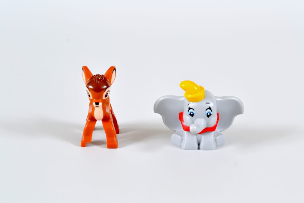 O conjunto é complementado por figuras de Bambi e Dumbo, parecendo que acabaram de sair de seus respectivos filmes de animação. O clássico personagens fazem sua estreia em 43230 Walt Disney Tribute Camera e por enquanto será a única forma de fãs e colecionadores conseguirem entrar em contato com a dupla. A impressão em Bambi e Dumbo é excepcional, sendo que este último também beneficia de ser uma nova peça de dupla moldagem.