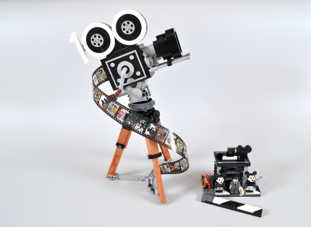 Para marcar o legado duradouro de Walt Disney, LEGO Group criou um modelo de 811 peças que consiste em três itens distintos. A primeira delas é uma versão em escala de uma câmera de cinema no estilo dos anos 1920 apoiada em um tripé, inspirada no mesmo tipo de configuração que a empresa usou em seus anos de formação para criar muitos de seus sucessos de animação.