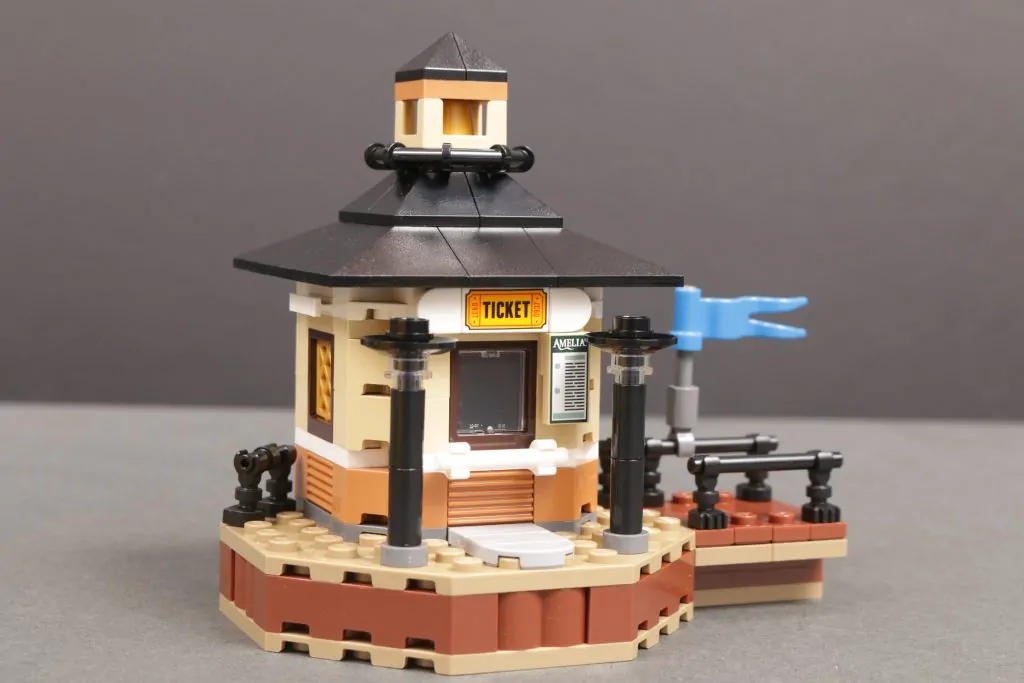 LEGO 5009157 Amelia Ticket Booth oferece um pequeno bônus confiável e divertido para quem pegar LEGO Ideas 21356 Barco a vapor fluvial.