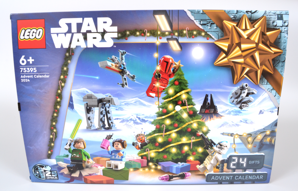 O resto de 75395 Star Wars O Calendário do Advento é composto por um X-wing, um TIE Fighter, um Y-wing, um Cruzador de Ataque da República Classe Venator, uma Ônibus Espacial do Imperador, uma U-wing, uma Ônibus Espacial Jedi T-6, uma Manopla Mandaloriana, o Fantasma, o Caça Estelar Jedi de Yoda, o Razor Crest, o Crimson Firehawk e o Castelo de Darth Vader.