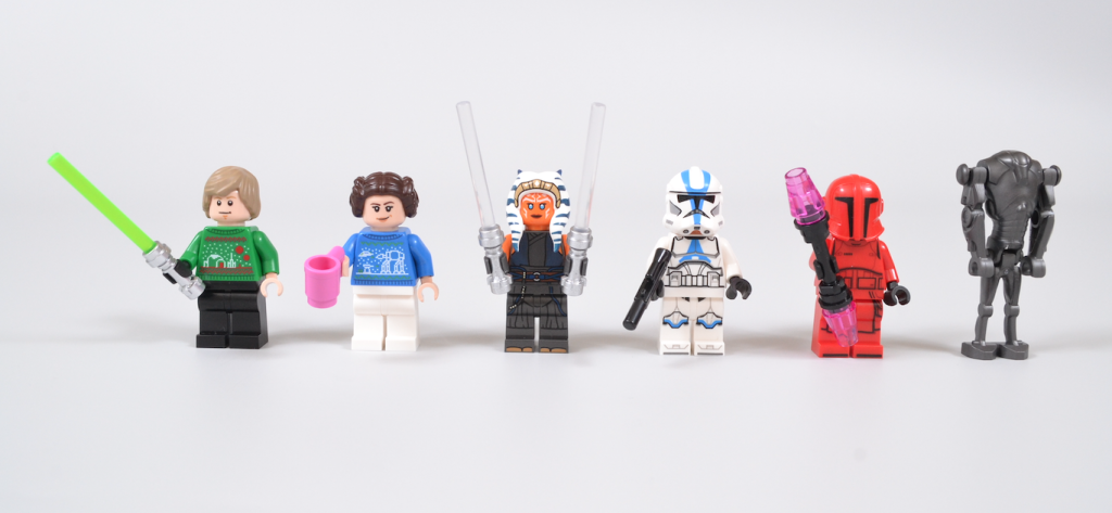 Geralmente são os últimos que são mais atraentes, embora 75395 Star Wars A caixa temática de Hoth do Calendário do Advento inclui apenas duas ofertas exclusivas. O Luke Skywalker de Natal e a Princesa Leia ostentam suéteres festivos, combinando com o visual de C-3PO e R2-D2 da seleção do calendário de 2022 e do Imperador Palpatine do conjunto do ano passado.