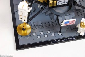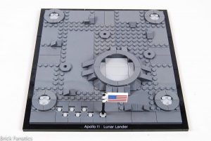Este é um conjunto que parece ser principalmente destinado como uma peça de exibição e uma grande parte de seu apelo a esse respeito é a base sobre a qual é construído. Placas cinza-claro representando a superfície lunar não perturbada foram cobertas quase inteiramente por placas cinza-escuro, ladrilhos e declives dispostos para representar crateras e textura. Essas camadas duplas permitem que o cinza-claro seja exposto onde a superfície foi perturbada, o que, no detalhe mais encantador do conjunto, recria aquelas famosas primeiras pegadas resultantes de "um pequeno passo para o homem". A orientação do módulo de pouso é definida de forma que esses degraus se alinhem com a escada de descida, com um adesivo da placa deixada na lua colocado no mesmo local. Uma bandeira americana, como aquela plantada durante a missão, completa a cena dos primeiros passos. Essa atenção aos detalhes é o que faz 10266 destacar-se como algo verdadeiramente especial.