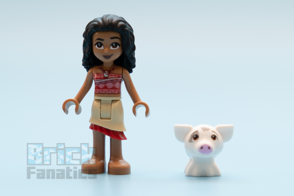 O que 41150 não ofereceu foi Pua, o amigo porcino de Moana, que está incluído neste conjunto. Uma pequena ilha é construída para o porco, representando que ele fica em casa no filme. O set é uma oportunidade para que isso seja corrigido, com a adorável personagemzinha agora podendo se juntar a Moana em seu barco.