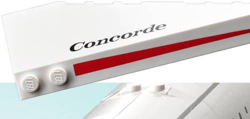 Os destaques incluem um novo para-brisa 4×4, que pode ser de fato uma peça impressa, bem como um elemento de inclinação azul escuro 1x6x1 na seção da cauda da aeronave e um cone truncado 4x4x3 como parte do nariz icônico do avião. As novas peças coloridas mencionadas são nougat médio Tecnico painéis de 'vírgula' para assentos e placas redondas brancas 1 × 3 nas asas, com o que parece ser uma série de logotipos impressos ou adesivos espalhados ao redor do modelo supersônico.
