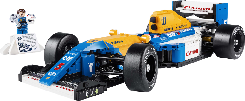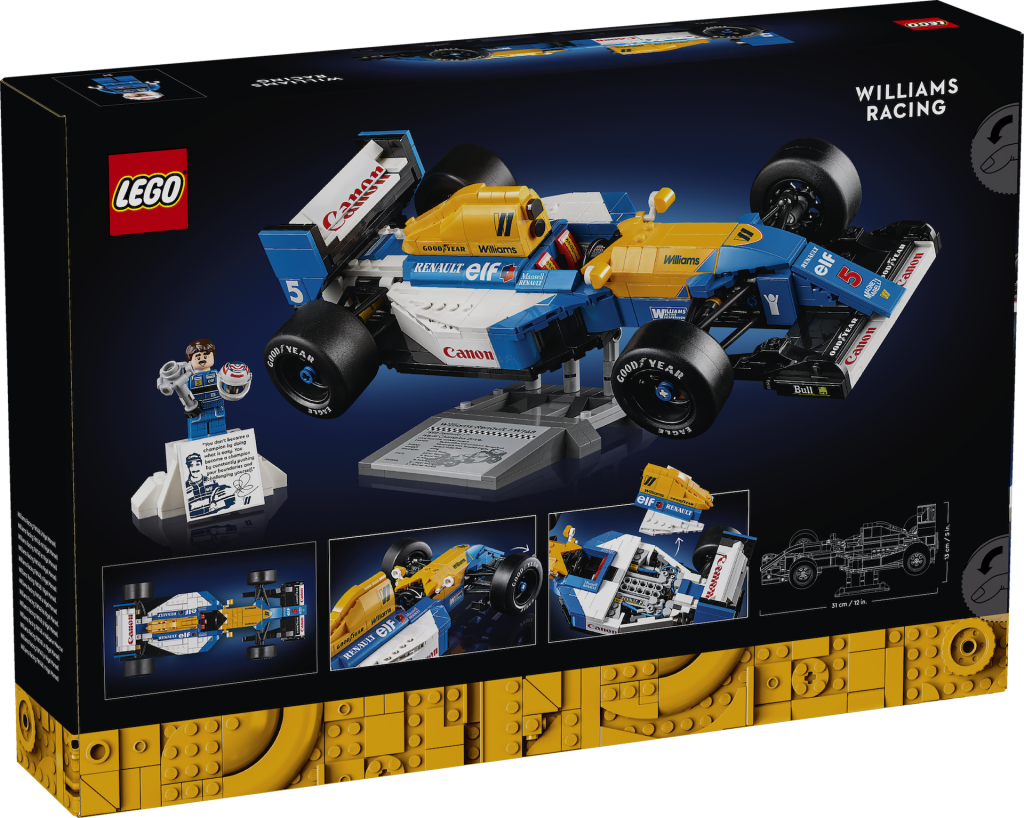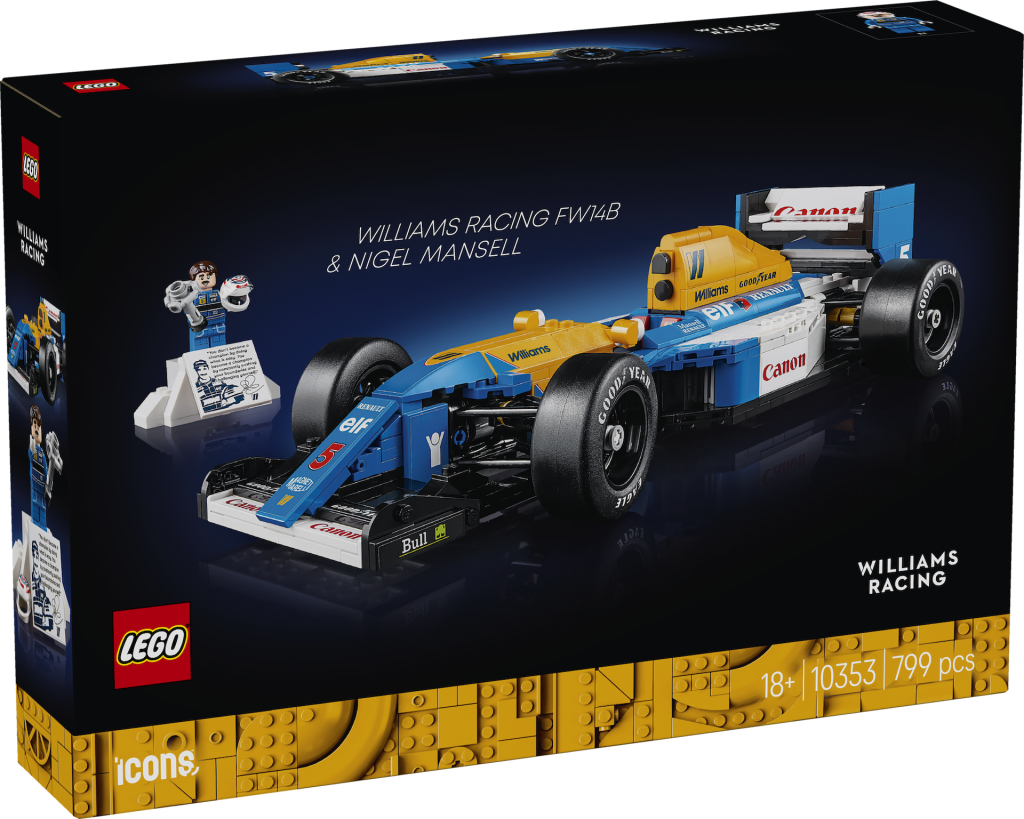 10353 Williams Racing FW14B e Nigel Mansell baseia-se em 2024 10330 McLaren MP4/4 e Ayrton Senna com pneus traseiros mais largos – sem dúvida o maior obstáculo com o primeiro em grande escala Ícones Carro de F1 – ao mesmo tempo que inclui outro lendário Formula 1 motorista com uma citação em um pedestal separado. Deve combinar muito bem com a McLaren, principalmente pelo seu esquema de cores vibrantes.