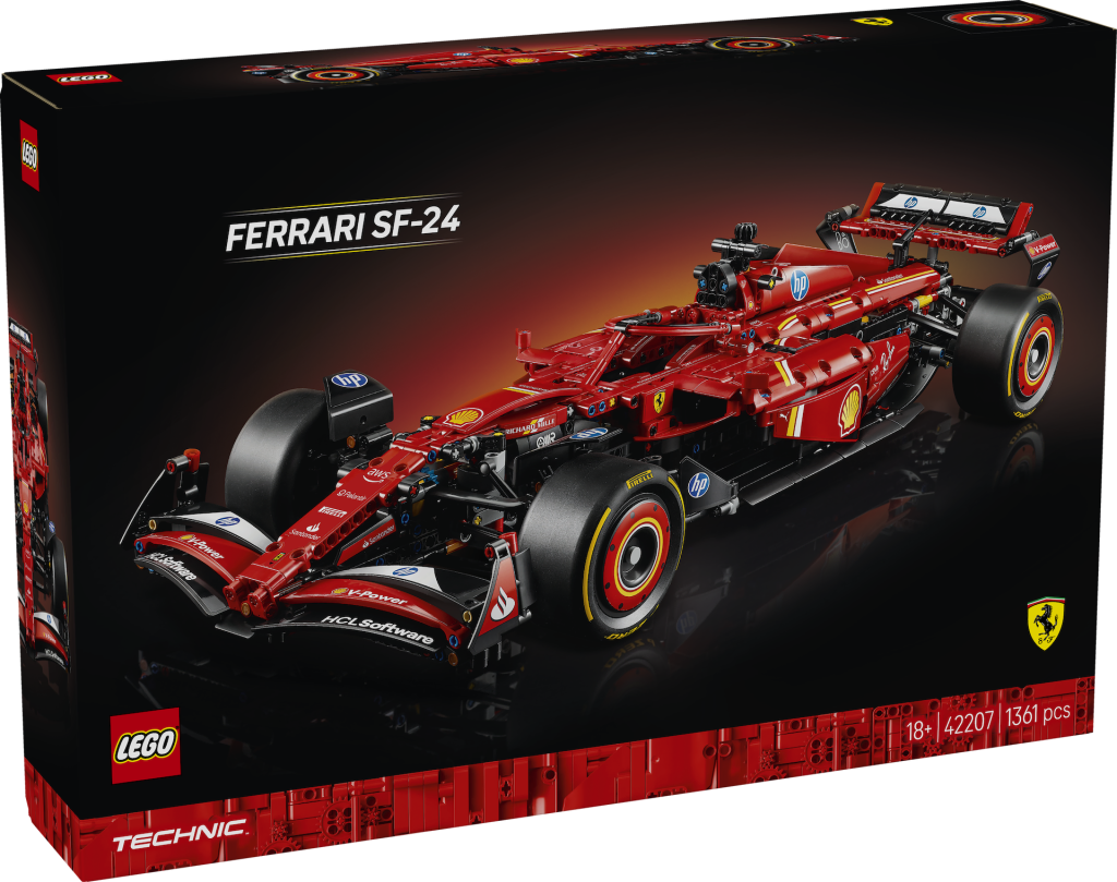 Ano seguinte DOBRO, Speed Champions, City e blind-boxed Minifiguras colecionáveis Formula 1 os conjuntos serão unidos por duas entradas do Ícones e Tecnico temas, cada um recriando um único carro em diferentes escalas e com bibliotecas de peças totalmente diferentes. Tecnico está mirando em um piloto moderno com 42207 Ferrari SF-24 Carro de F1, enquanto Ícones mergulha no passado com 10353 Williams Racing FW24B e Nigel Mansell.