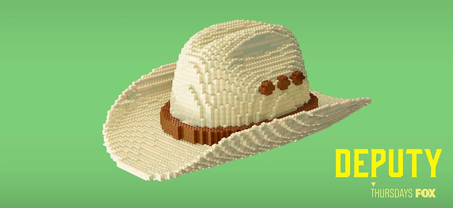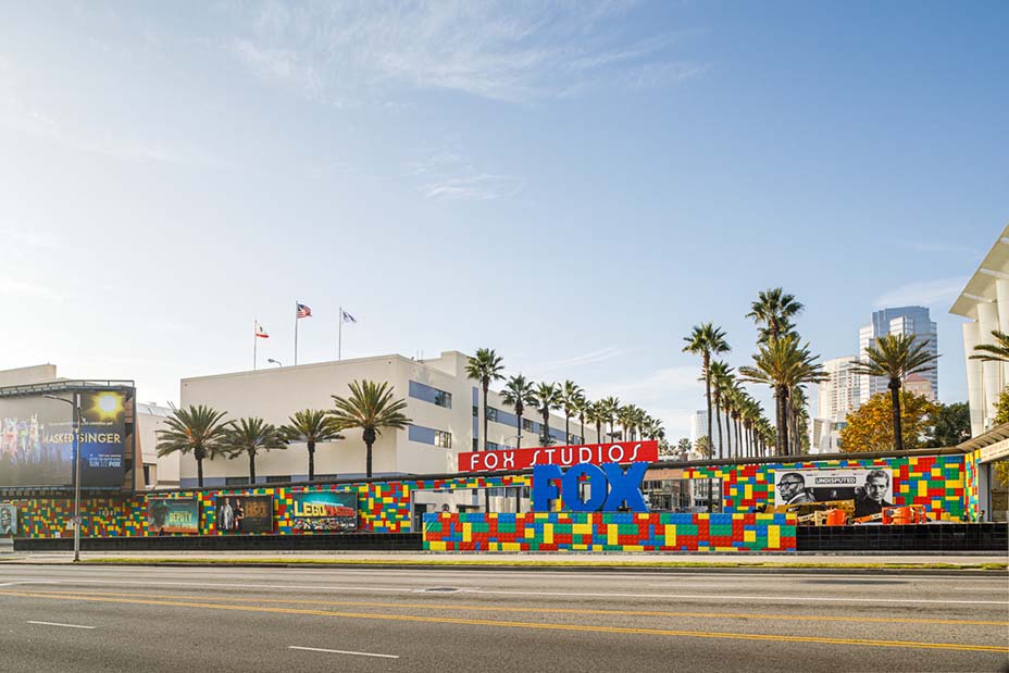 Até 9 de fevereiro, as cartas de portão do Fox Studios terão um LEGO vibe enquanto o logotipo da Fox permanecerá inteiramente construído com tijolos azuis. Os outdoors de programas da Fox, incluindo The Masjed Singer, Deputy e 911: Lone Star, receberam um LEGO reforma.