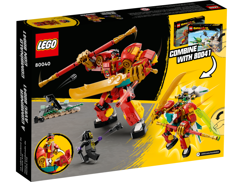 Monkie Kid tem outro mech na forma de 80040 Monkie Kid's Combi Mech, uma construção robusta que pode ser combinada com a próxima criação desta lista e apresenta duas minifiguras.
