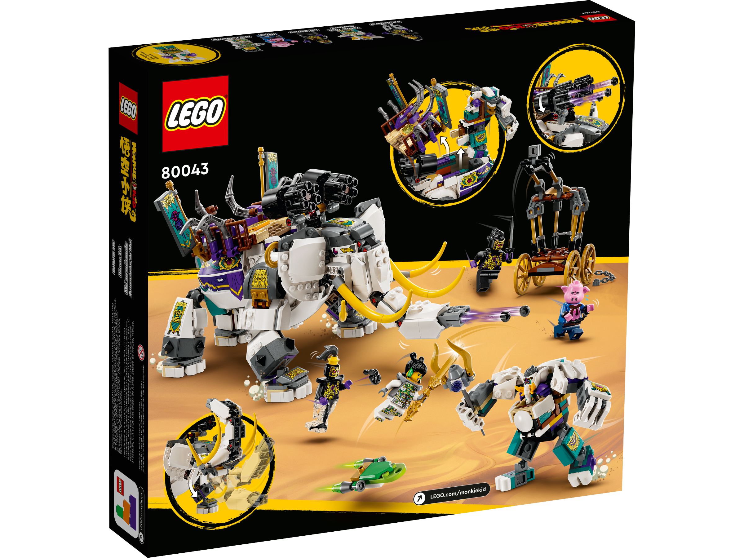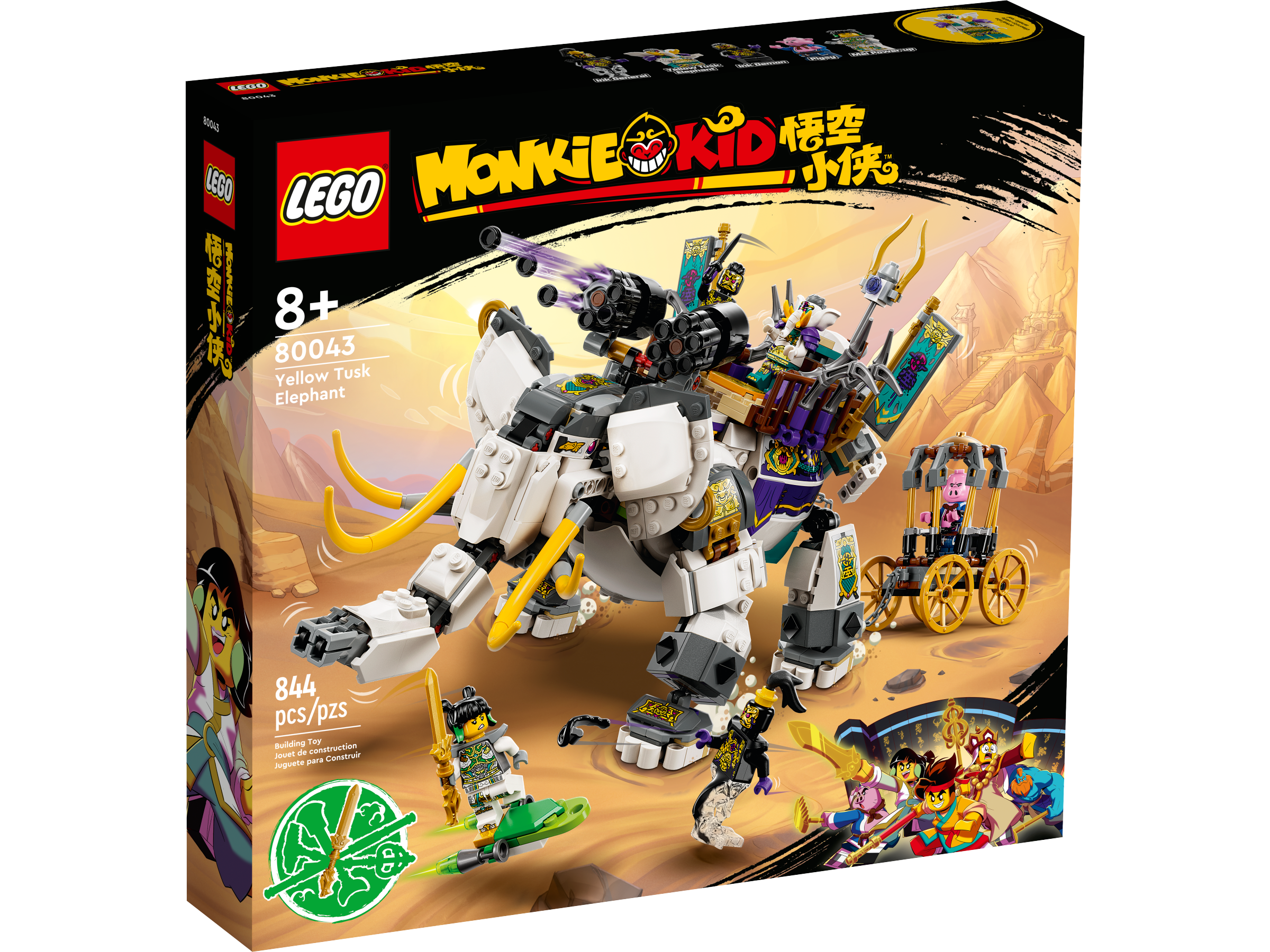 Atuando como a construção principal de um dos três vilões principais de LEGO Monkie Kid em 2023, 80043 Elefante Presa Amarela é uma construção realista com cinco minifiguras incluídas representando um elefante com muitas partes móveis.
