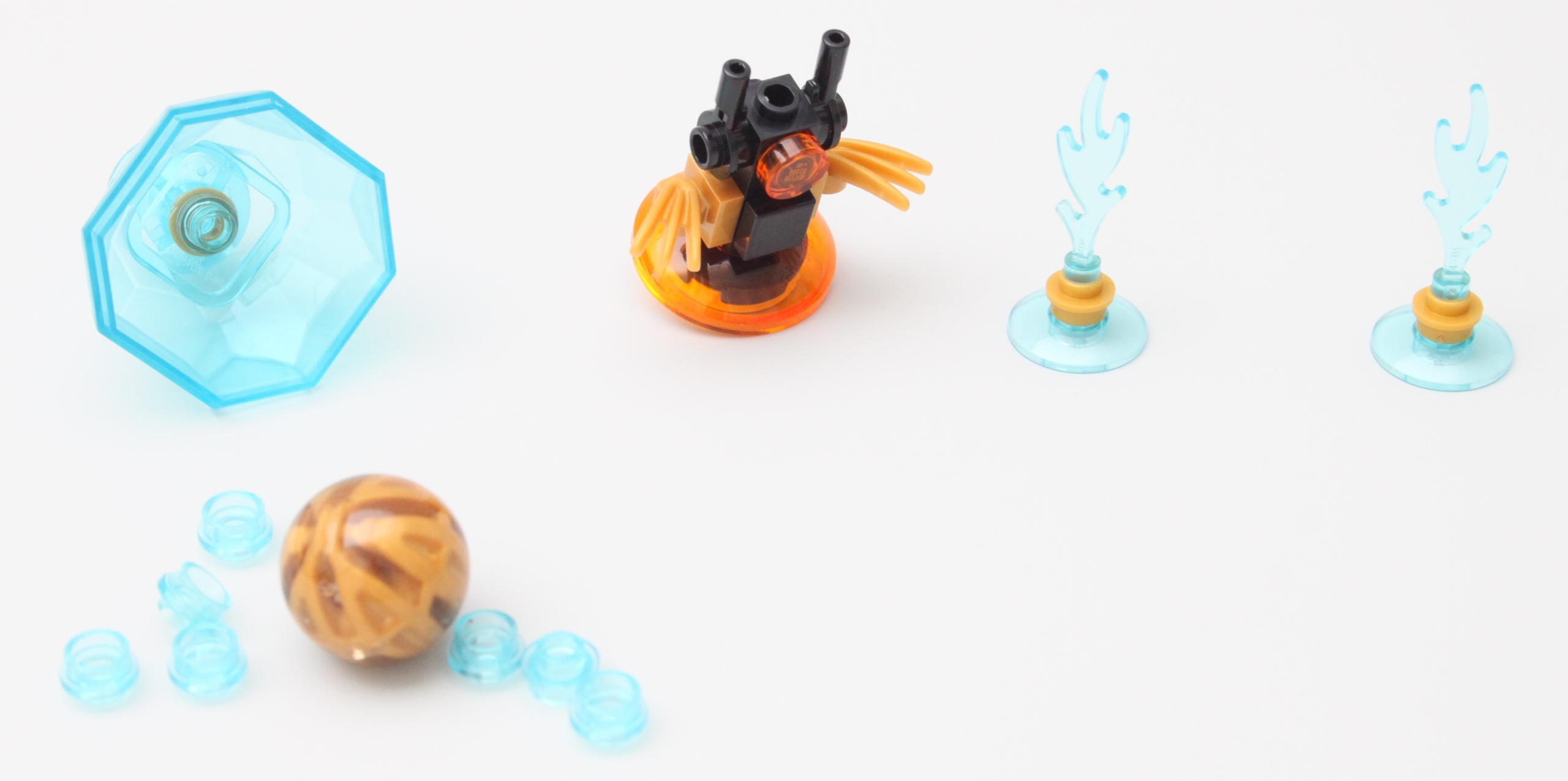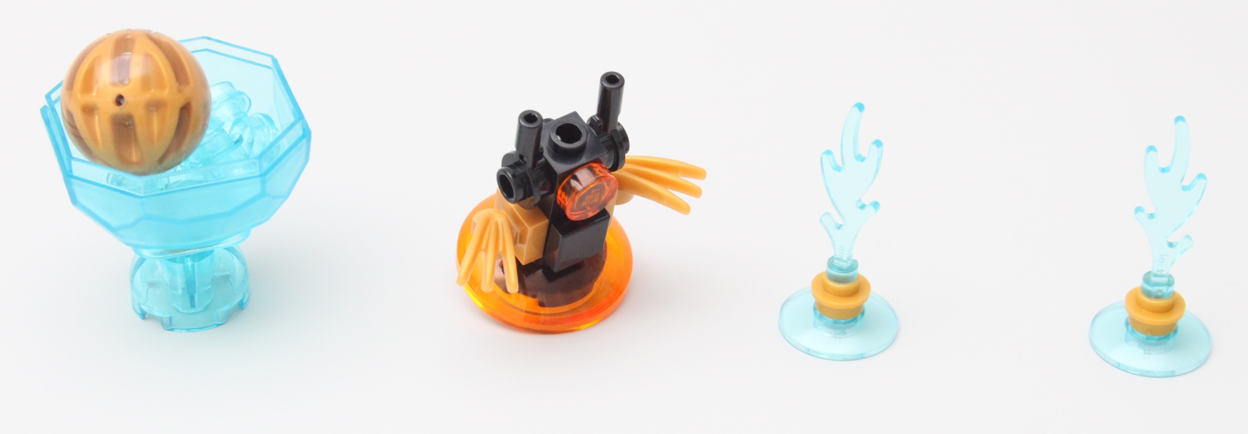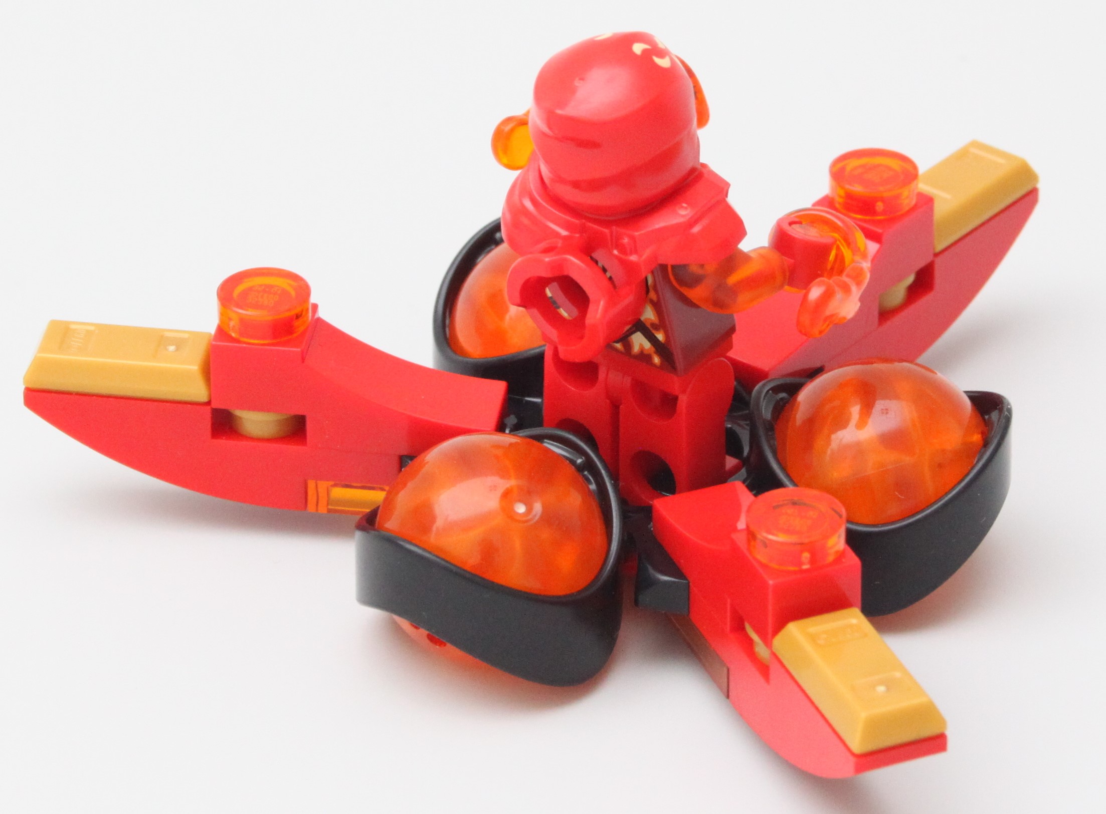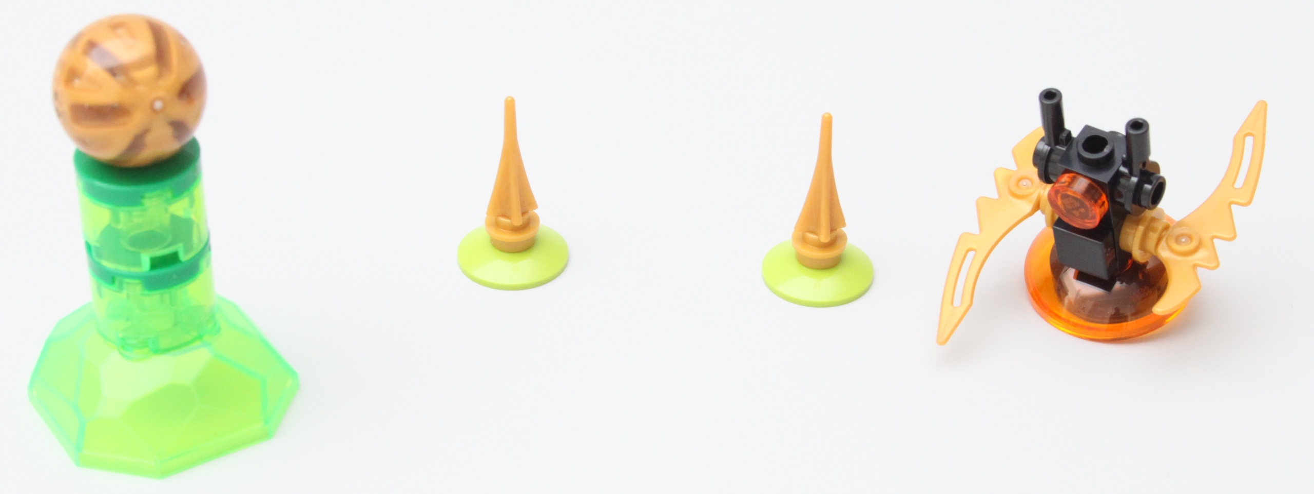 Cada spinner é acompanhado por uma série de acessórios, incluindo um droide Imperium e um quarto núcleo de dragão dourado. Isso torna muito mais fácil pegar esse elemento, que de outra forma só aparece em 71795 Templo dos Núcleos de Energia do Dragão.