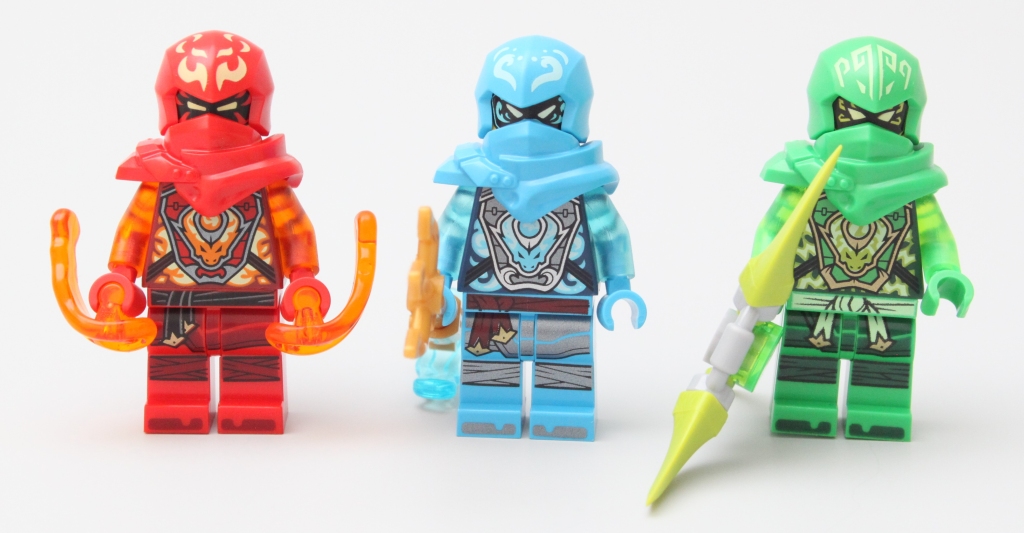 Uma das maiores razões para comprar spinners NINJAGO são as minifiguras exclusivas, com os personagens abraçando seus poderes elementares em alguns designs tradicionalmente atraentes. Estes geralmente vêm com inúmeras estampas exclusivas também, o que infelizmente mudou com 71777 Kai's Dragon Power Spinjitzu Flip, 71778 Derivação Spinjitzu do Poder do Dragão de Nya e no 71779 Lloyd's Dragon Power Spinjitzu Spin.