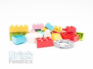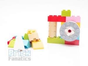 Essas mãos podem interagir com os elementos LEGO incluídos. Está incluída uma pequena seleção de 29 peças, para construir alguns acessórios básicos para o modelo segurar. No pequeno livreto que também acompanha a caixa, há fotos que mostram claramente como construir alguns modelos incluindo câmera, violão e lápis.