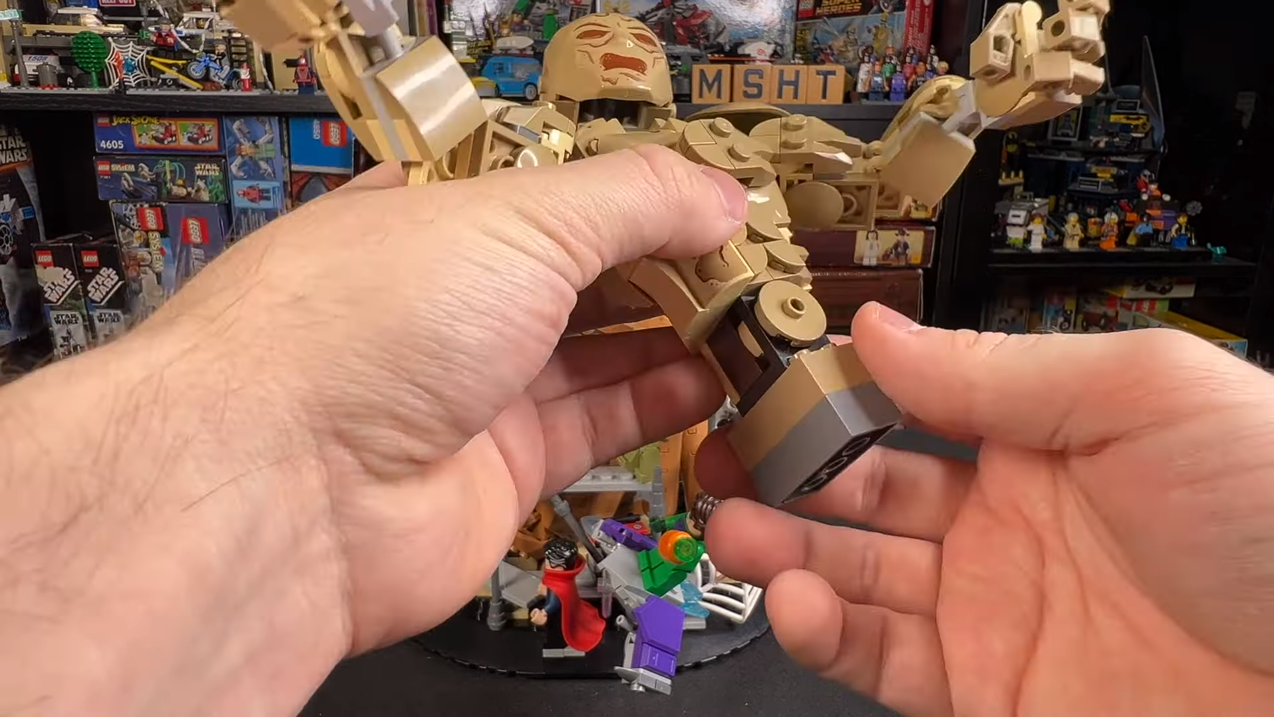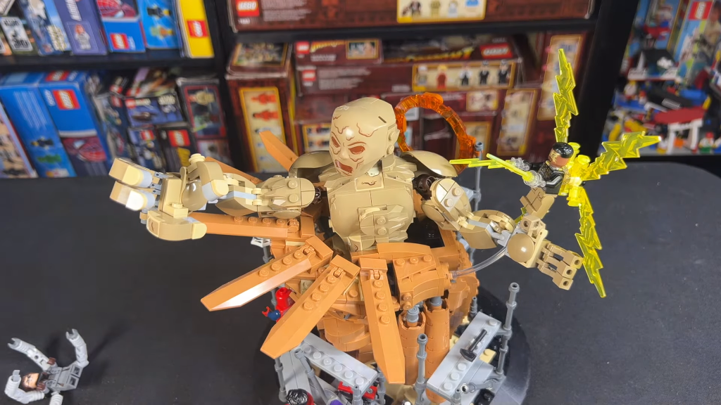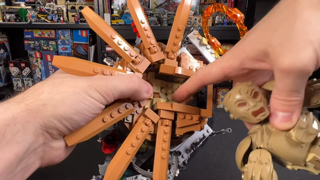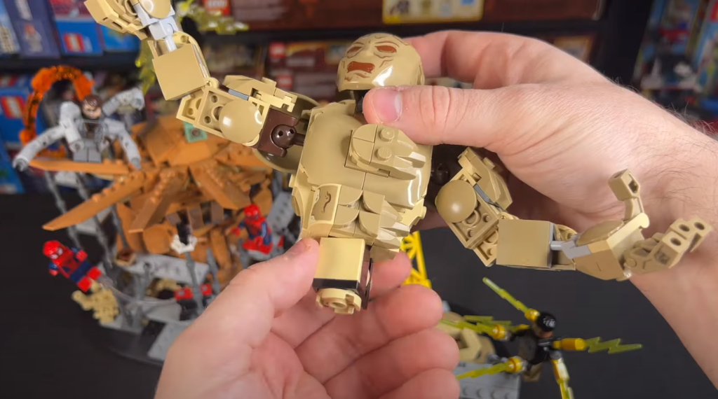 A figura do sandman se encaixa no lugar onde a mão menor está 76261 Spider-Man Batalha final está localizado, mas a figura só pode ficar em uma pequena variedade de ângulos, limitando as possibilidades de exibição do modelo combinado.
