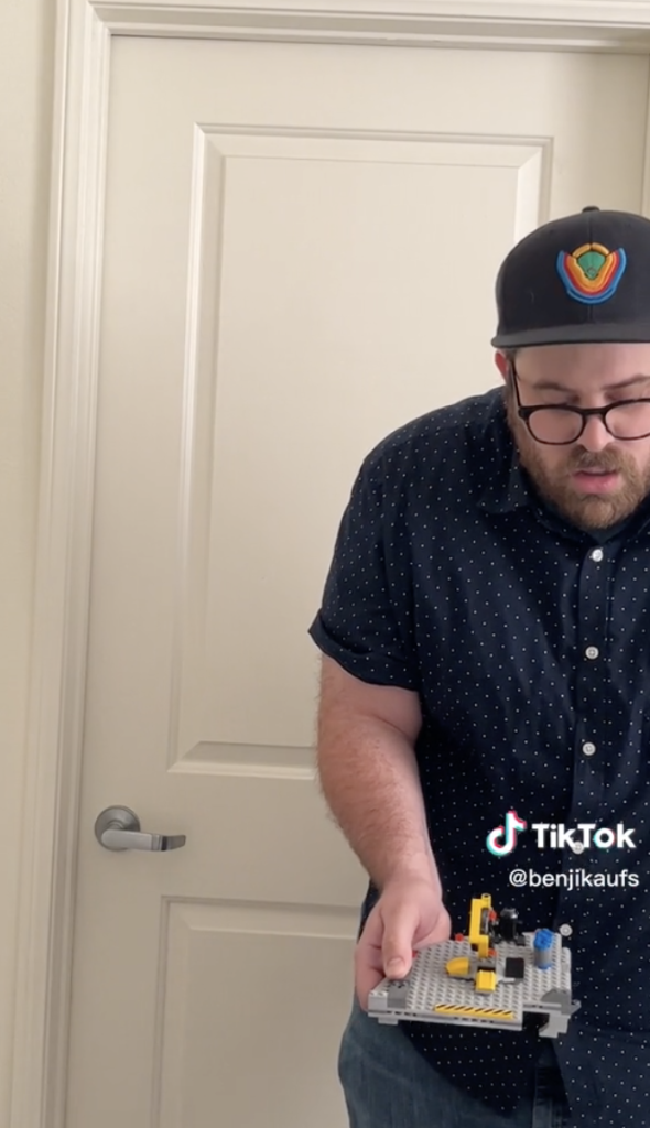 Ao apresentar sua recém-construída Estrela da Morte 75179 para a câmera no TikTok, um modelo que aparentemente levou duas semanas para ser montado, a alegria de Benji Kaufman rapidamente se transforma em uma pilha de LEGO tijolos. Uma mulher, provavelmente sua parceira, entra na sala, batendo uma porta para o recém-construído LEGO Estrela da Morte.