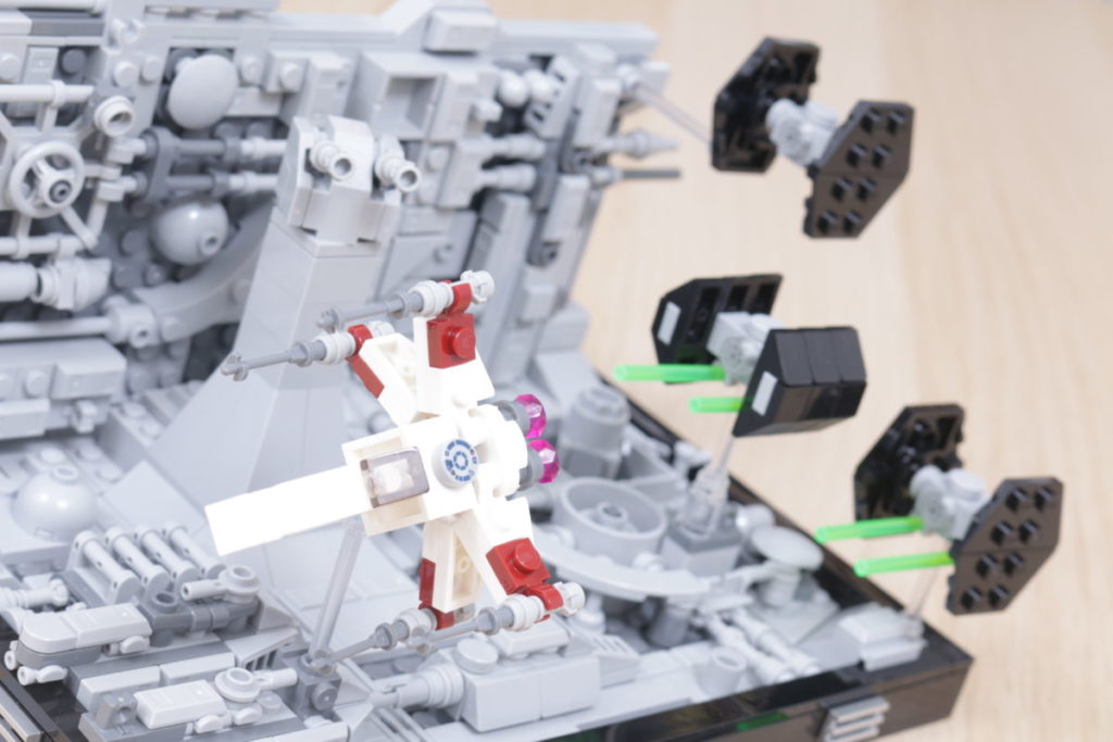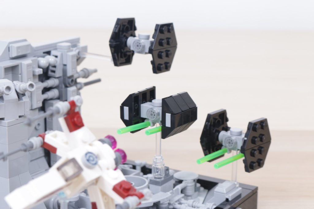 Mencionamos a insatisfação com a série GWP por suas construções no estilo calendário do advento para veículos e naves espaciais e, com um X-wing, dois TIE Fighters e o TIE Advanced de Darth Vader no centro do diorama 75329 Death Star Trench Run, é uma consideração importante mais uma vez.