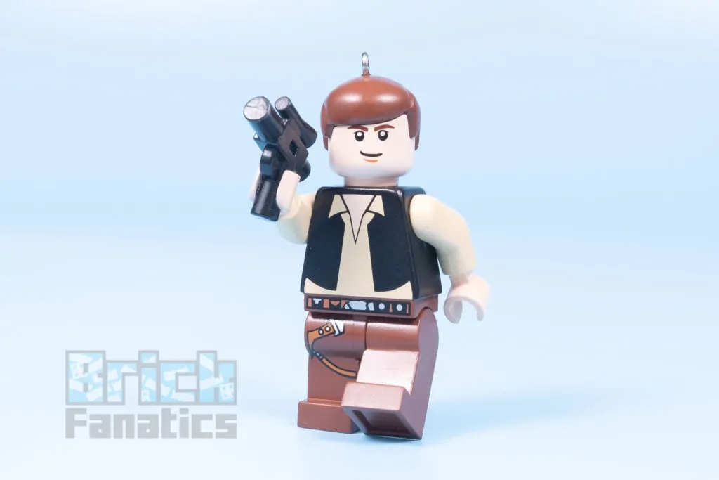 Esta decoração de Natal é uma versão aprimorada da minifigura Han Solo incluída em muitos dos conjuntos de temas.