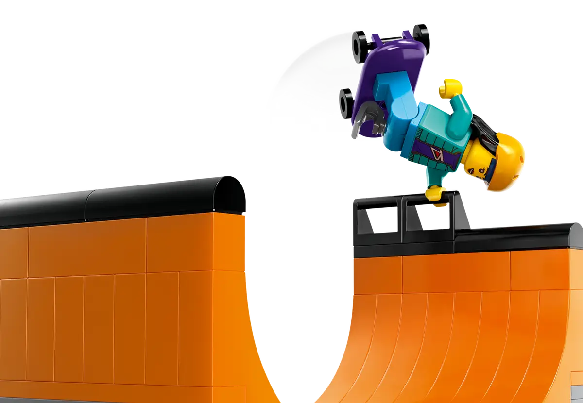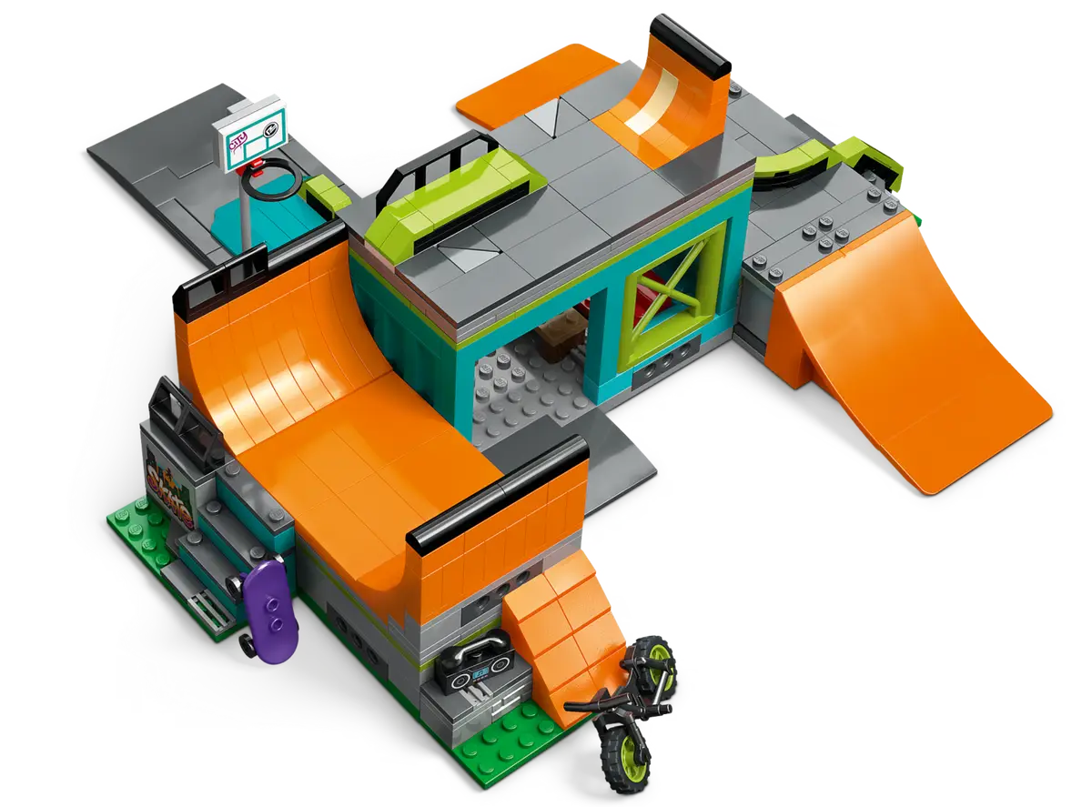 Além do skate, patinete e bicicleta BMX, o recém-nomeado Street Skate Park tem patins em linha e quatro minifiguras de patinadores, uma das quais tem o que parece ser uma perna protética. Há também um prático LEGO Road Plate para se conectar a outros City conjuntos.