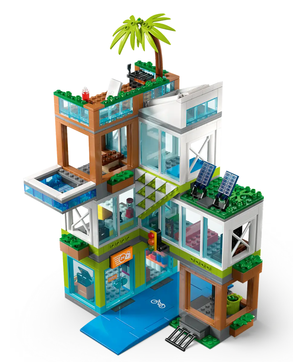 60365 Edifício de apartamentos tem tudo desde sala, cozinha, quarto e casa de banho, assim como alguns painéis solares e formas de locomoção. Também há muitos acessórios para as minifiguras, como celular, halteres, cachorro-quente e garrafa de suco. Os veículos incluem uma scooter de mobilidade e uma bicicleta.