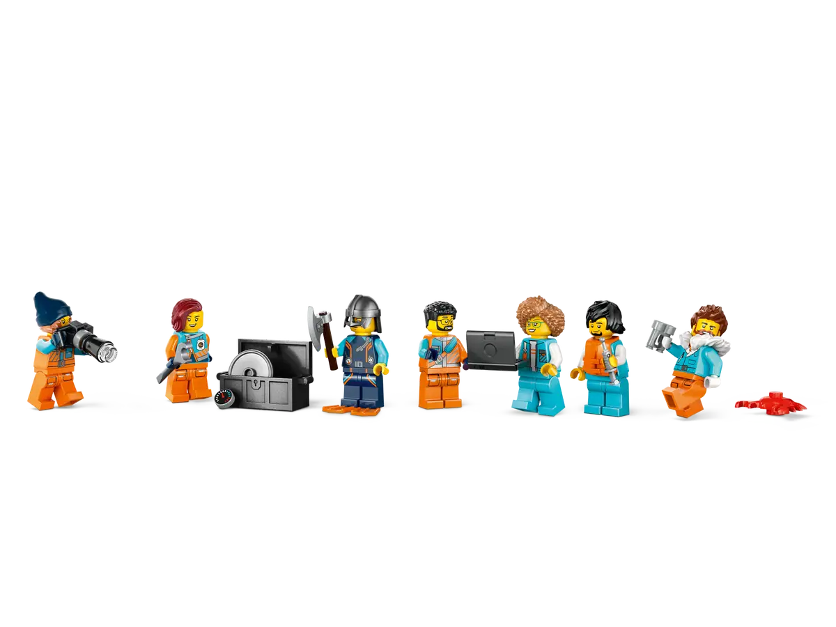 60368 Navio Explorador do Ártico, renomeado como Arctic Research Ship, tem de tudo, desde um helicóptero, um bote e um naufrágio Viking para explorar. O conjunto vem com sete minifiguras, uma nova orca LEGO e, claro, um baú de tesouro.
