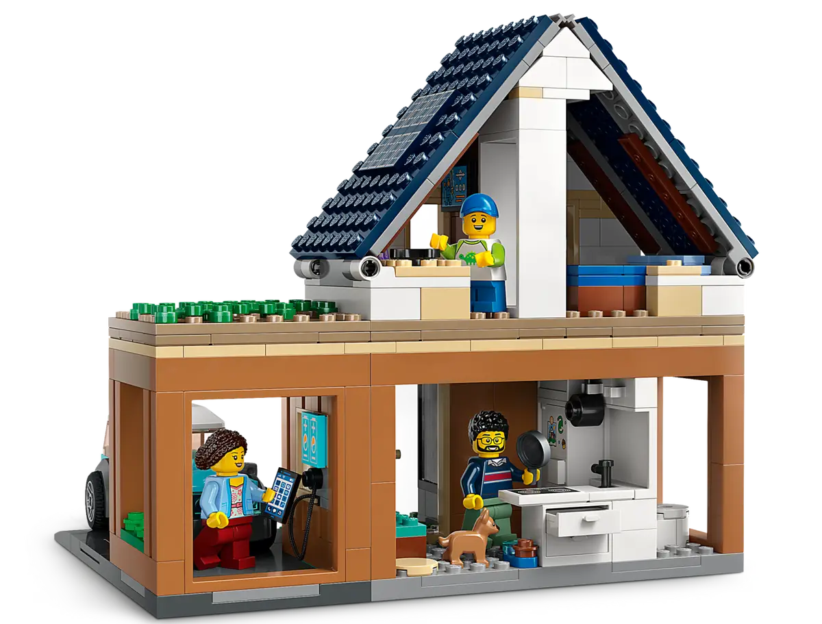 Adicionando o carro ao nome oficial do conjunto, 60398 Casa Familiar e Carro Elétrico tem tudo que uma pequena família de minifiguras LEGO poderia desejar, desde um jardim de inverno até uma pequena área de jantar elegante. Há também painéis solares no teto, e o carro elétrico certamente se encaixa no LEGO Groupcrenças de sustentabilidade.