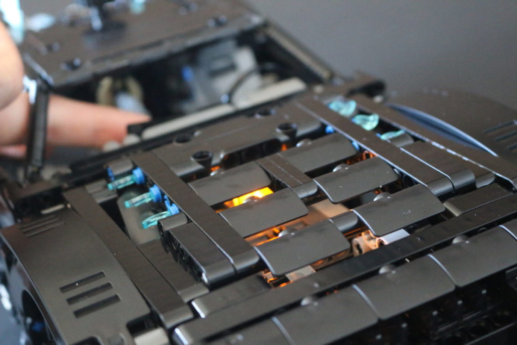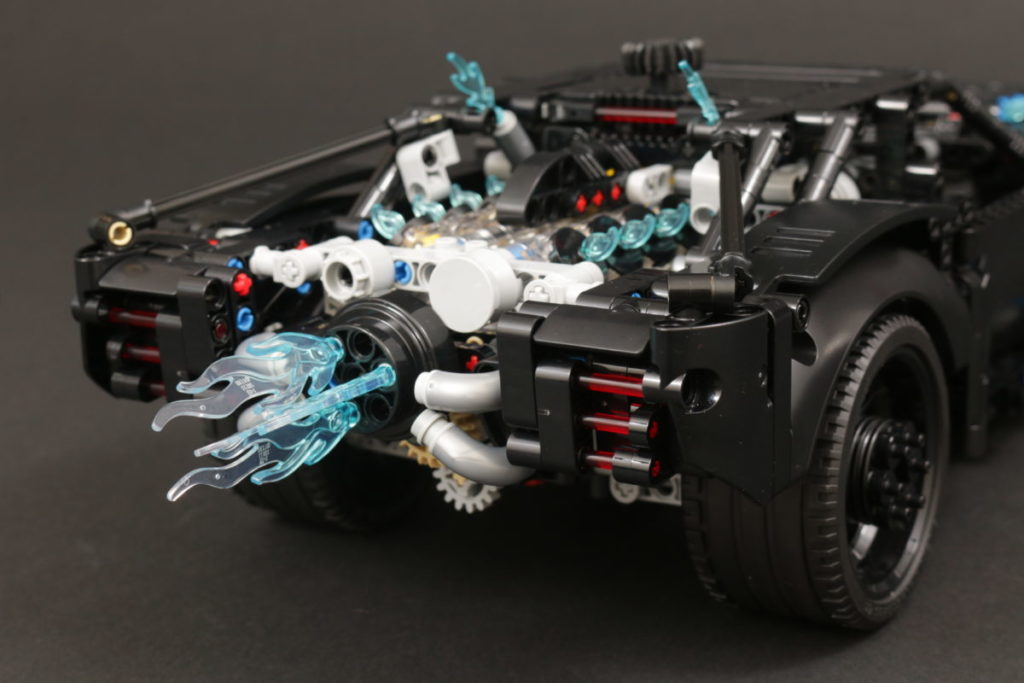 Algumas dessas funções são recriadas usando tijolos leves de cores diferentes – um que acende um motor na frente com um brilho laranja e outro que acende um foguete na parte de trás. Aqueles familiarizados com o filme provavelmente serão capazes de fazer uma conexão entre esses recursos e o material de origem, e é uma visão imponente de se ver na prateleira no escuro também.
