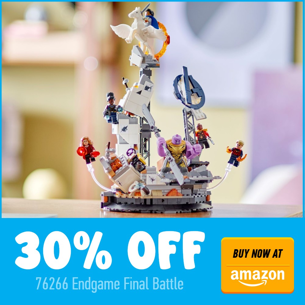 Completando as ofertas da Amazon desta semana está 76266 Batalha Final do Endgame com 30% de desconto, com algumas minifiguras fantásticas e um conjunto que ficará perfeito ao lado do próximo Diorama de Vingadores: Ultimato, ajudando a completar a cena.