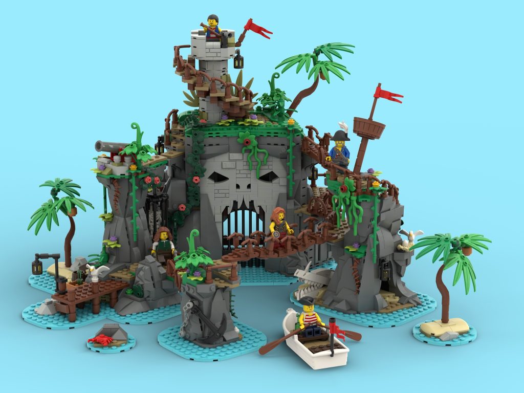 Expandindo no mundo da LEGO Pirates, Ominous Isle é outra base para vigaristas marítimos com um interior completo e configuração modular para reorganizar como você deseja.