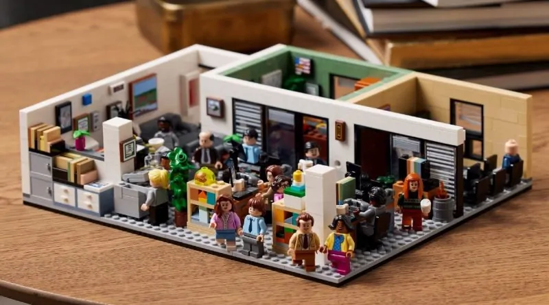 A sitcom 21336 The Office consegue se manter fiel a O projeto original de Lewis, incluindo um layout semelhante e salas, mesas e cadeiras, equipamentos e muitos acenos profundos para o show. O conjunto também possui 15 minifiguras colossais, o máximo para qualquer LEGO Ideas modelo até hoje, com quase todos os personagens-chave do show presentes e corretos.
